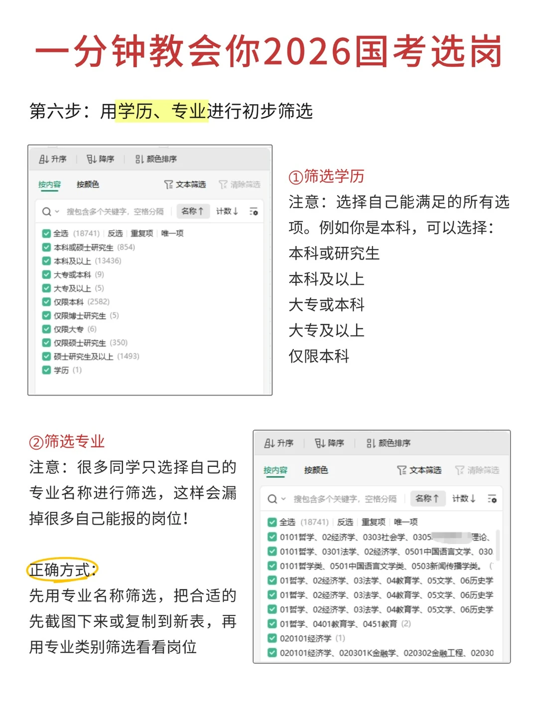 注意:先用专业名称筛选,把合适的先截图下来或复制到新表,再用专业类别筛选看看岗位