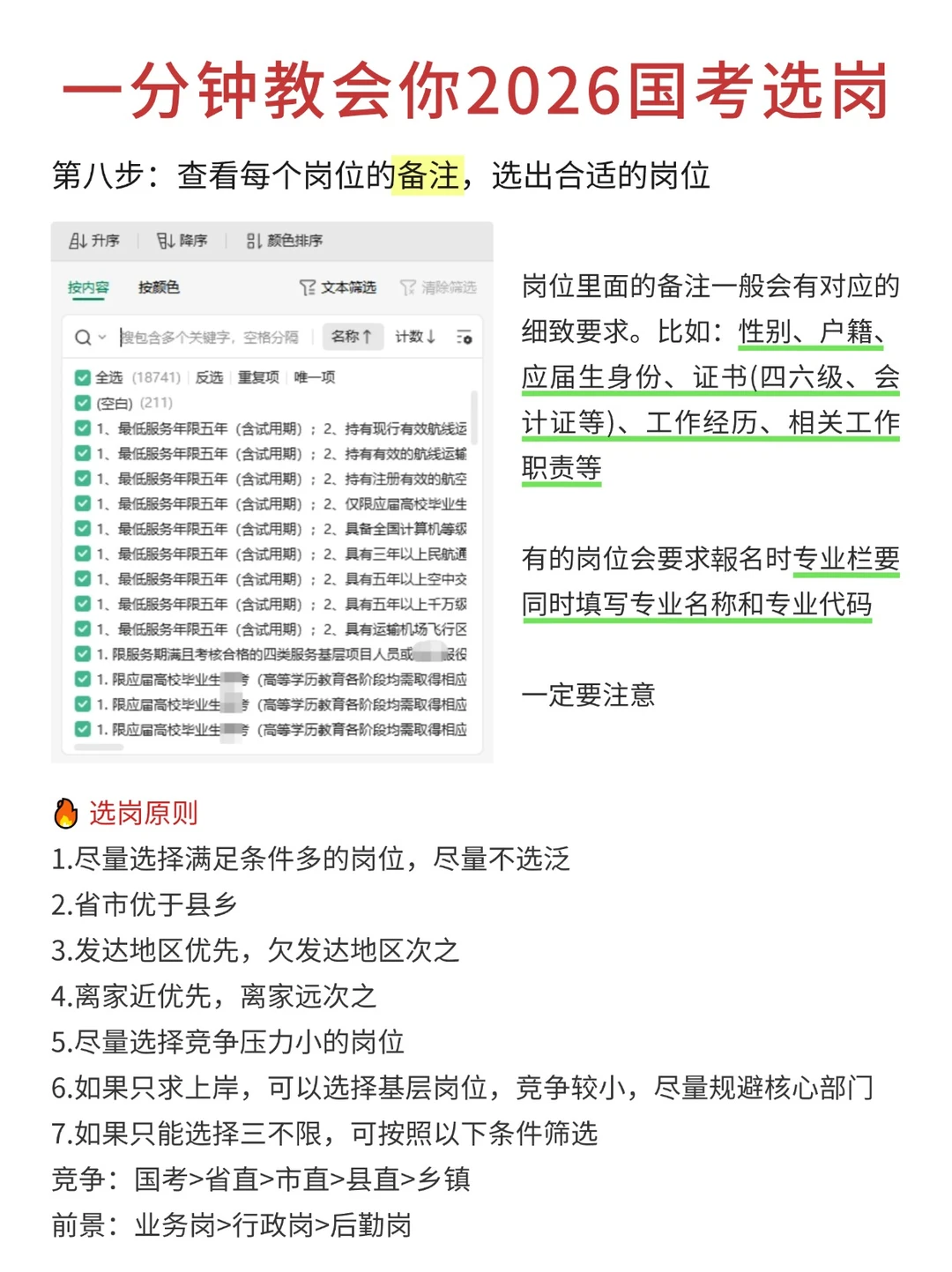 ⭕8、查看每个岗位的【备注】,选出合适的岗位