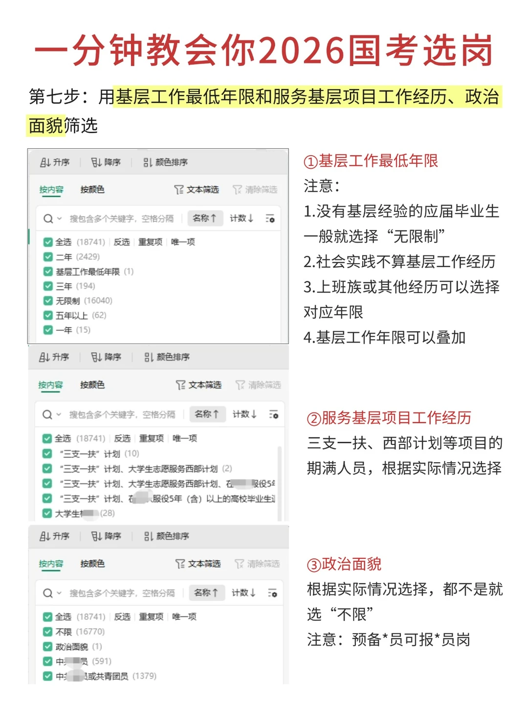 ⭕7、用基层工作蕞低年限和服务基层项目工作经历、政治面貌筛选