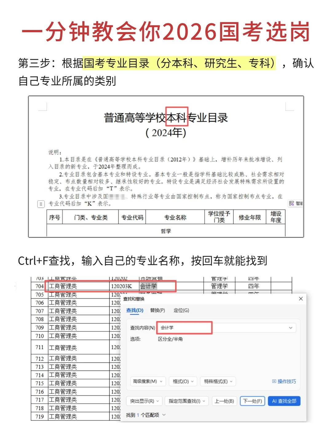 ⭕3、根据国考专业目录(分本科、研究生、专科),确认自己专业所属的类别