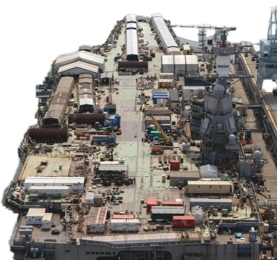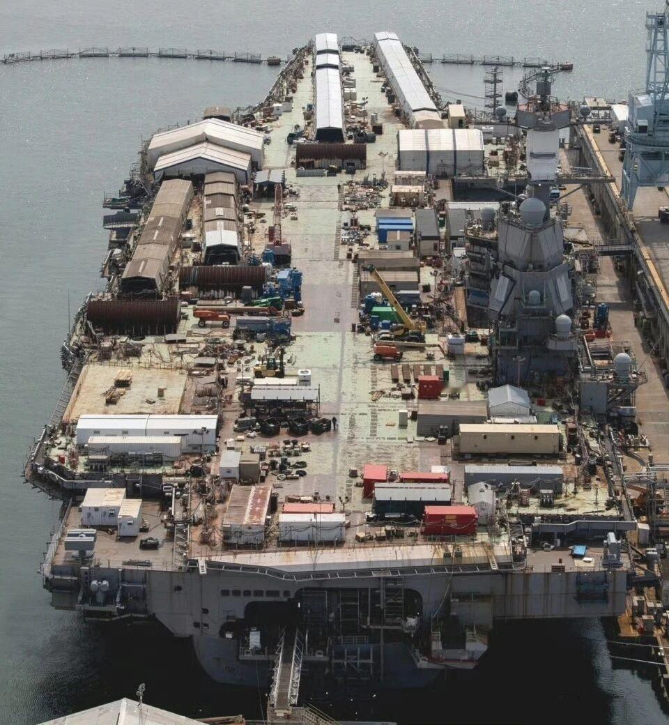 第一张图你第一眼看到觉得是什么? 这是美国福特级核动力航母的第二艘舰 CVN-79肯尼迪号航母的甲板 肯尼迪号于2019年下水,至今仍没有进行海试,最远好像是测试动力系统挪了一下。 四条电磁弹射器已经安装好了,还在调试阶段,服役时间遥遥无期。可能川普的放弃电磁弹射的选择是正确的。