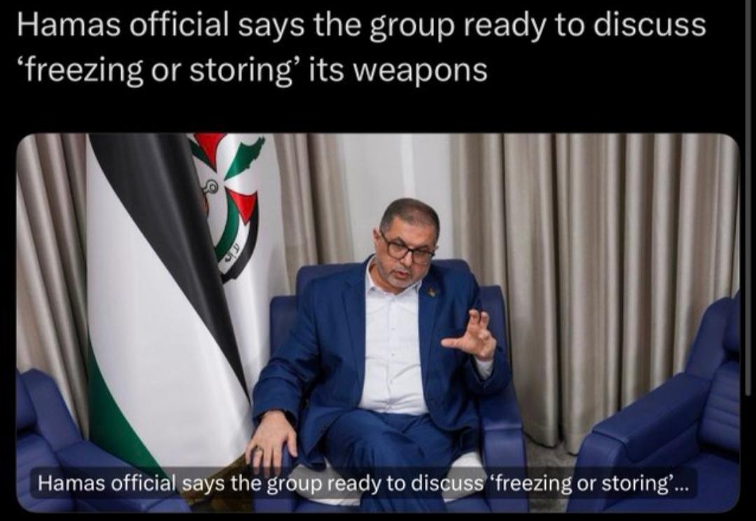 今天哈马斯提出:如果巴勒斯坦建国、以色列撤离约旦河西岸,哈马斯考虑冻结武器。 哈马斯这次是把他对以色列的袭击换成了他能代表巴勒斯坦权力机构法塔赫来谈建国问题。 加沙和平停火协议是处理哈马斯袭击后以色列对加沙的报复和哈马斯解除武装问题,而哈马斯却把自己变成能代表整个巴勒斯坦和得到国际社会普遍承认的巴勒斯坦权力机构。哈马斯这就让哈马斯的袭击问题外延了,也改变了停火协议的内涵。