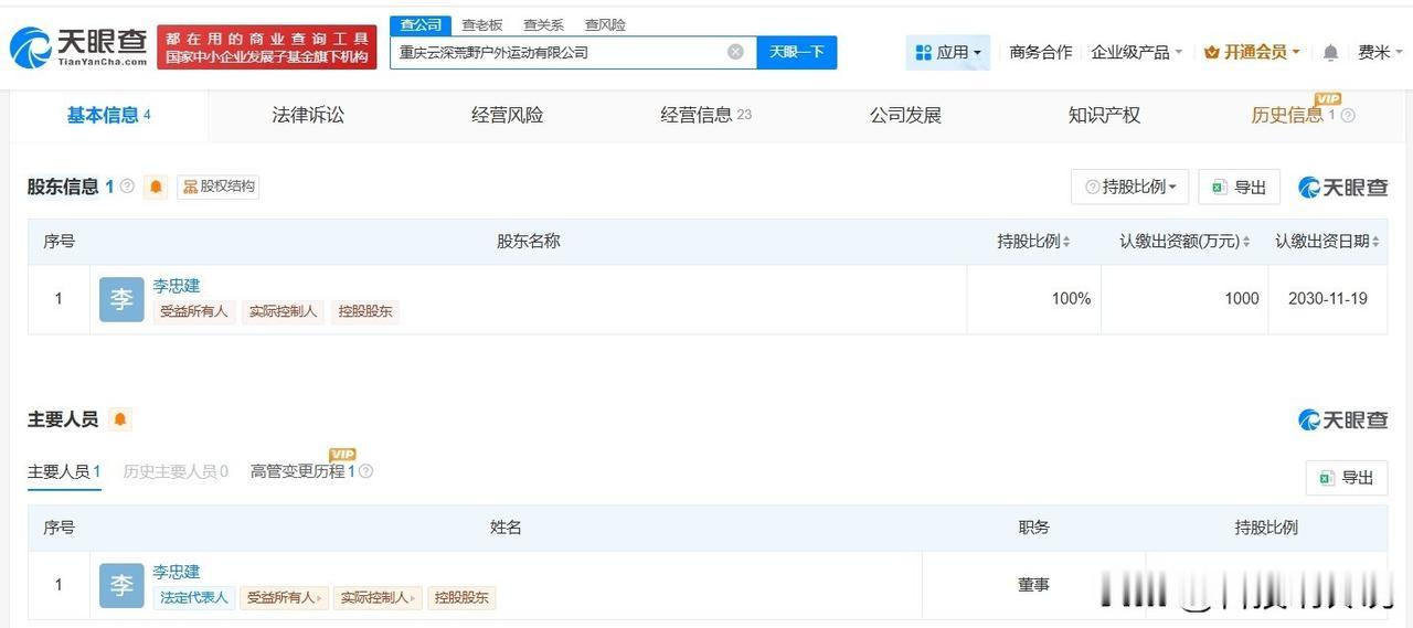 【揭秘榕江荒野求生活动主办方 榕江荒野求生活动主办方近期成立】榕江通报荒野求生女选手疑遭骚扰 据媒体报道,贵州榕江荒野求生挑战赛于12月2日开赛后仅四天就被官方叫停,原因是安全员骚扰选手、低温天气等多项争议。12月7日晚间,榕江县文体广电旅游局表示正督促举办方退回参赛选手报名费用,并针对疑似存在安全员骚扰参赛女选手的情况成立了处置工作组,由县公安局开展调查。 天眼查App显示,涉事公司重庆云深荒野户外运动有限公司成立于今年11月,法定代表人为李忠建,注册资本1000万人民币,经营范围包括健身休闲活动、体验式拓展活动及策划、食品销售等,由李忠建全资持股。 天眼查信息: