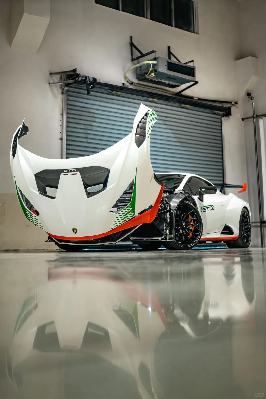兰博基尼HuracanSTO白/黑橙,不知道谁的大玩具绝美车片