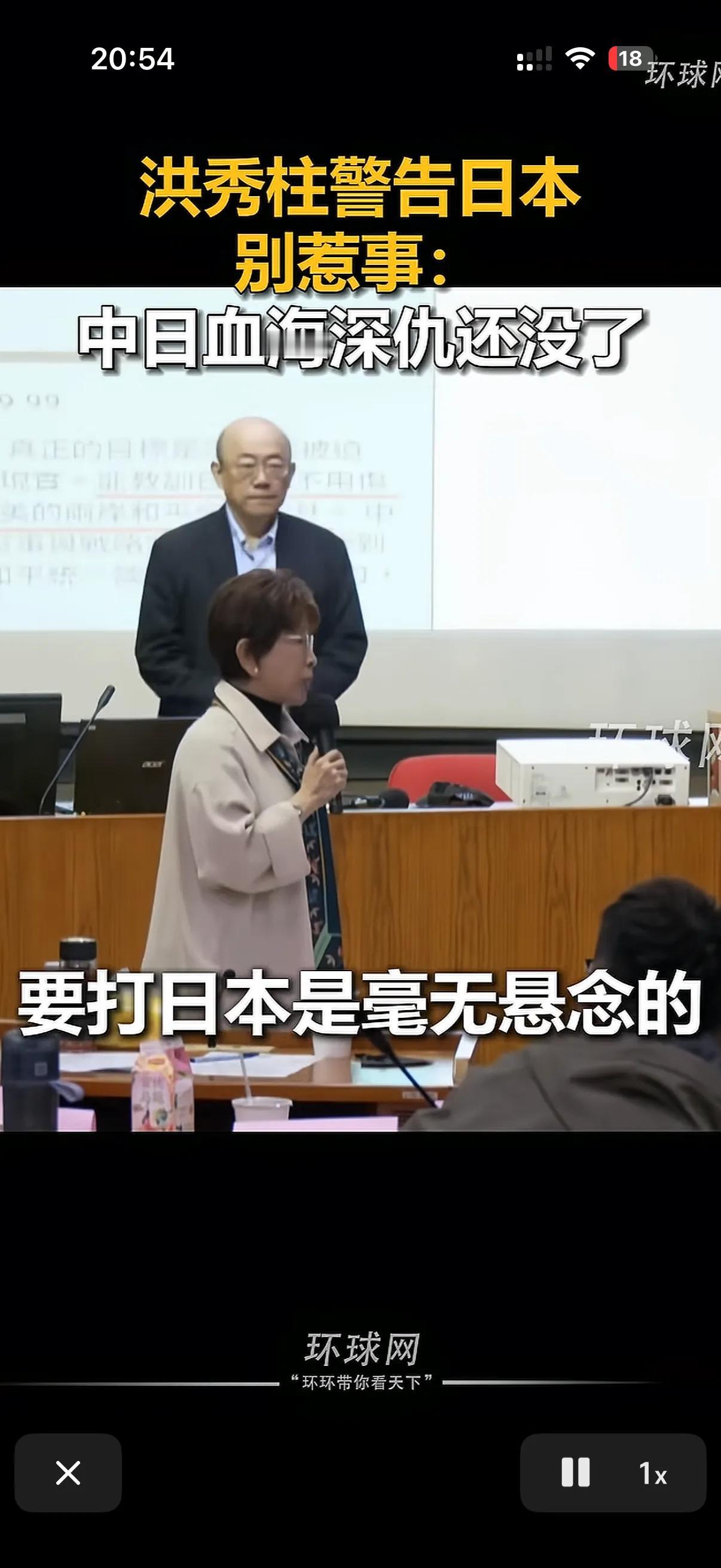 洪秀柱警告日本消停点! 在台湾洪秀柱一直以敢说真话被人所知! 这次在日本高市早苗问题上,洪秀柱更是敢说真话!在一次公开活动当中,中国国民党前主席洪秀柱更是公开喊话警告。 日本别惹事,中日血海深仇还没了呢! 如果哪天日本玩火自焚惹怒了大陆,那么大陆打日本是毫无悬念的!
