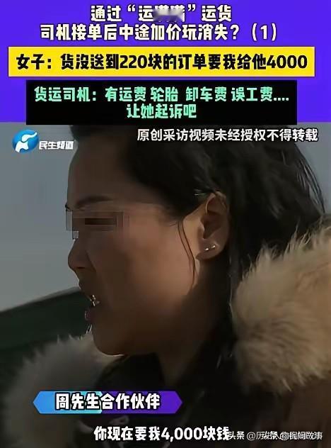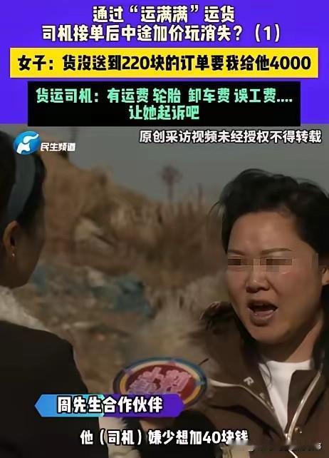 文案一:直击乱象,警惕货运“坐地起价”陷阱 220元订单坐地起价到4000元?河南周先生的货运遭遇太离谱!从新乡运往郑州的10万元货物,平台下单后司机先加价40元,运输途中竟以轮胎磨损费、压车费等名义层层加码,费用飙涨近20倍。拒绝不合理要求后,司机直接失联、关闭定位,平台客服更甩锅“处理不了,建议起诉”。 幸而周先生带记者寻回货物并报警,可类似乱象何时休?《民法典》明确运输途中胁迫加价属违法行为,平台更有监管义务。提醒各位货主:下单留存合同凭证,遇恶意加价立即固定证据,报警+向12315/邮政管理局投诉维权,不让不法司机和失职平台有机可乘!货运骗局 运输乱收费 装车收费
