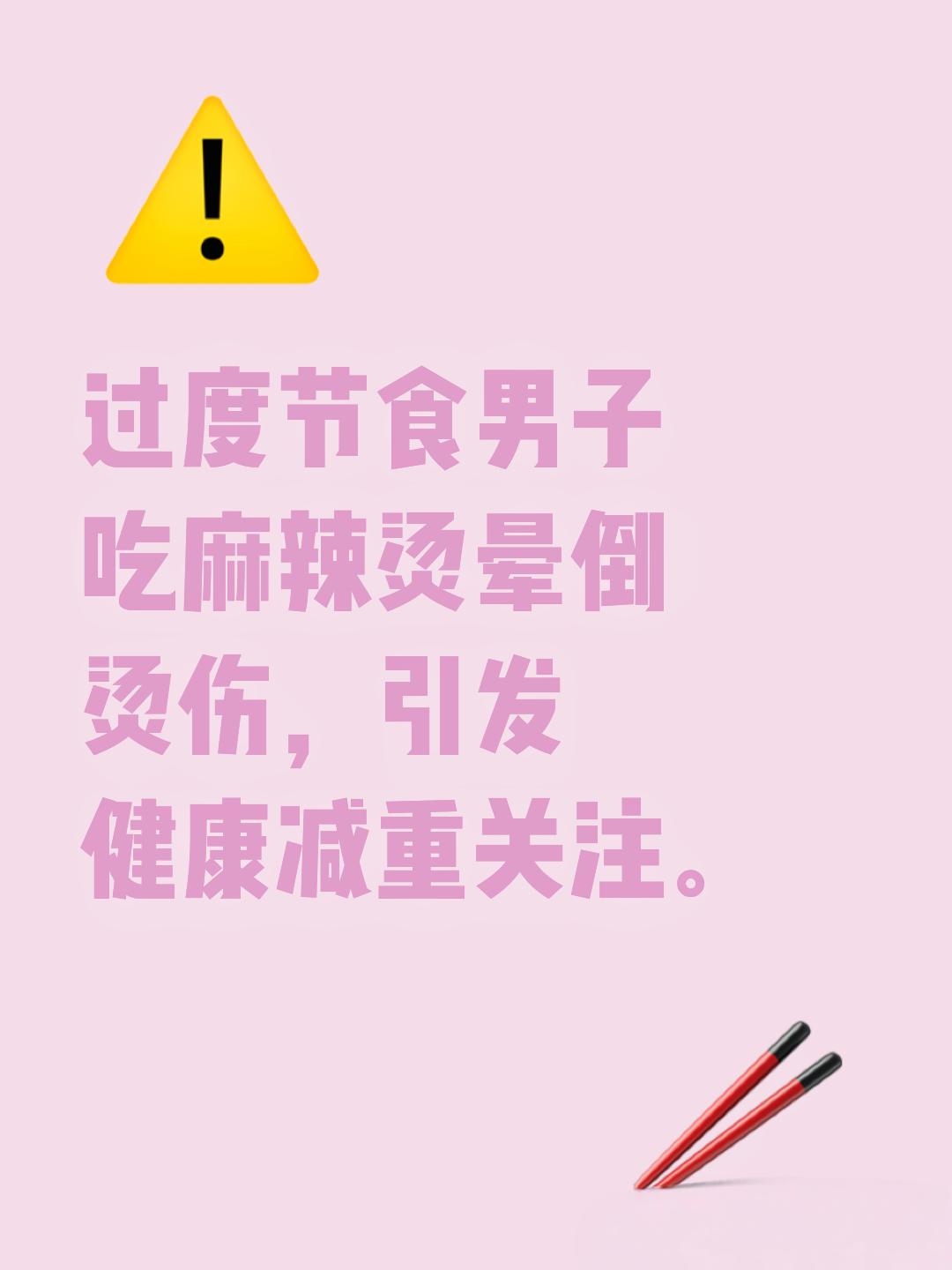 一名男子因过度节食减肥,竟在吃麻辣烫时晕倒并被烫伤,引发了人们对健康减重方式的关注。 近日,内蒙古包头的一名男子因过度节食减肥,在吃麻辣烫时突然晕倒,还把脸埋进了碗里。据当事人武先生介绍,他为了减肥,每天只吃一顿饭,当天忙到下午才去吃麻辣烫,结果在吃培根肉时噎了一下,突然感到身体发冷晕倒。幸运的是,店家及时掐人中救回一命,但武先生醒来后脸部已严重烫伤。这一事件再次提醒公众,过度节食减肥不仅危险,还会造成营养不良和其他健康问题。专家建议,健康的减肥方式应该是均衡饮食、合理控制热量、增加身体活动和保持良好生活习惯。武先生表示,这次经历让他深刻认识到科学减重的重要性,今后会更加注重健康饮食和适量运动。
