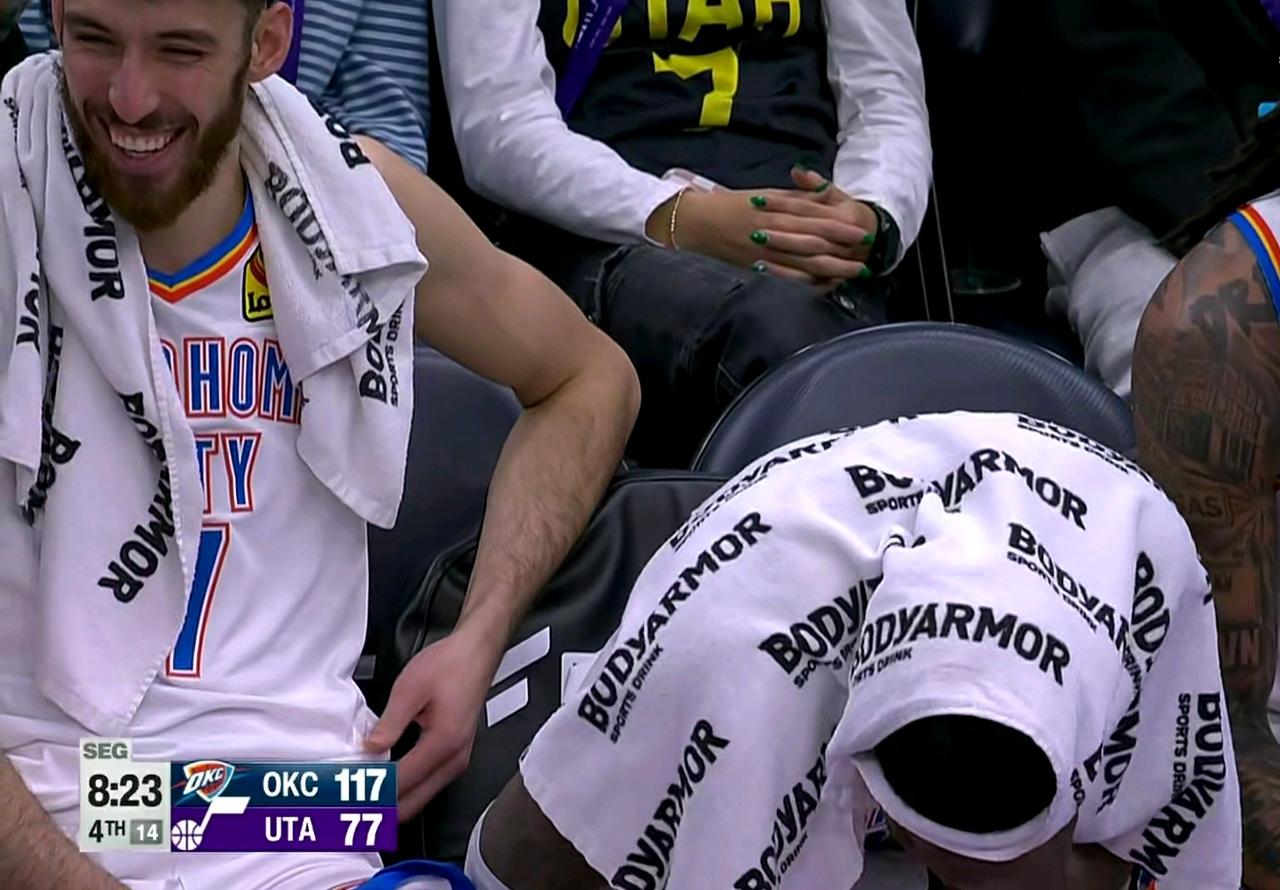 说实话:这就是联盟断档的存在! 15连胜!sga等几位主力战术性轮休,二当家杰伦威廉姆斯和三当家切特霍姆格伦三节又打卡下班了!看看雷霆替补席人仰马翻,无比开心的样子,俩人就打了20几分钟就休息了,无比的轻松,就想问问联盟有哪支球队能不羡慕雷霆的替补阵容实力,在雷霆客场挑战爵士的比赛中,实际上第一节就打崩了爵士领先25分,到了末节主力都不打了,替补上来继续打崩对手,最高领先42分,戴格诺特现在也是无比的轻松惬意,自己的球队兵强马壮,即使替补打战斗力也是不俗的,可以按计划可以不间断的轮休主力,也不影响球队的战绩,还手握一推选秀权,真的是良性循环啊! 雷霆篮球 雷霆轮休 霍姆格伦 杰伦·威廉斯