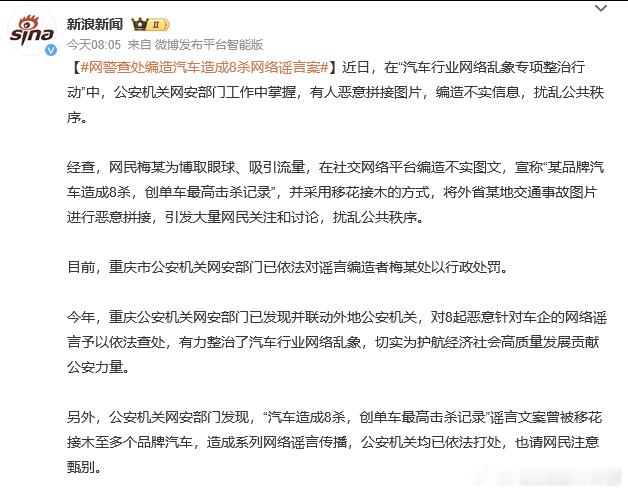 真的很费解,编这种某品牌车祸的目的和动机是什么···希望大力打击这种恶劣的行为网警查处编造汽车造成8杀网络谣言案