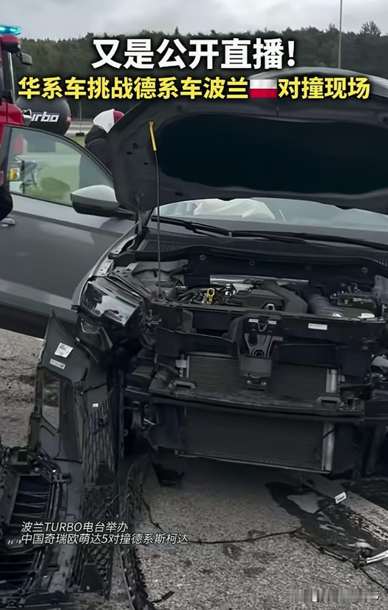波兰电台直播中国汽车对撞德系车,一辆奇瑞欧萌达5与德系斯柯达以超过60迈的速度迎面“硬刚”。砰一声巨响,双车安全气囊瞬间爆开,车头都撞得缩了进去,但最关键的乘员舱却都稳稳当当,这画面,震惊现场众人。 今年前三月,波兰新上牌的中国车超过了7000辆,市占率从近乎零猛冲到5%。 在欧洲,光是今年5月,中国品牌在欧洲的销量就猛增了85%,市场份额历史性地突破了5.4%,一个月就有近6.6万辆新车上路! 凭什么火得这么快?这场对撞就是最直白的答案——安全。 最为严苛的欧洲NCAP碰撞测试,中国10款新车直接斩获最高的五星评级。 早些年出口的主力还是燃油车,但到今年6月,更受欧洲市场欢迎的插电混动车型,在中国出口车里的占比已经超过了23%。比亚迪翻了三番,奇瑞更是夸张,翻了九番,强势啃下一大块市场份额。特斯拉减了三成,一些日系和欧系品牌也明显下滑。 眼看在新能源赛道快卷不过了,有些欧洲车企开始想“别的办法”,比如呼吁调整激进的环保法规,想给传统燃油车再续一口气。 所以,波兰那声碰撞巨响,听着是安全测试,实则是实力宣言。华系车这次登陆欧洲,拼的可不是花架子,而是从安全到技术,再到市场策略的全套硬核实力。 竞争才刚刚开始,欧洲即使放开燃油车恐怕也没人买单,毕竟环保的概念最初就是他们宣传的。