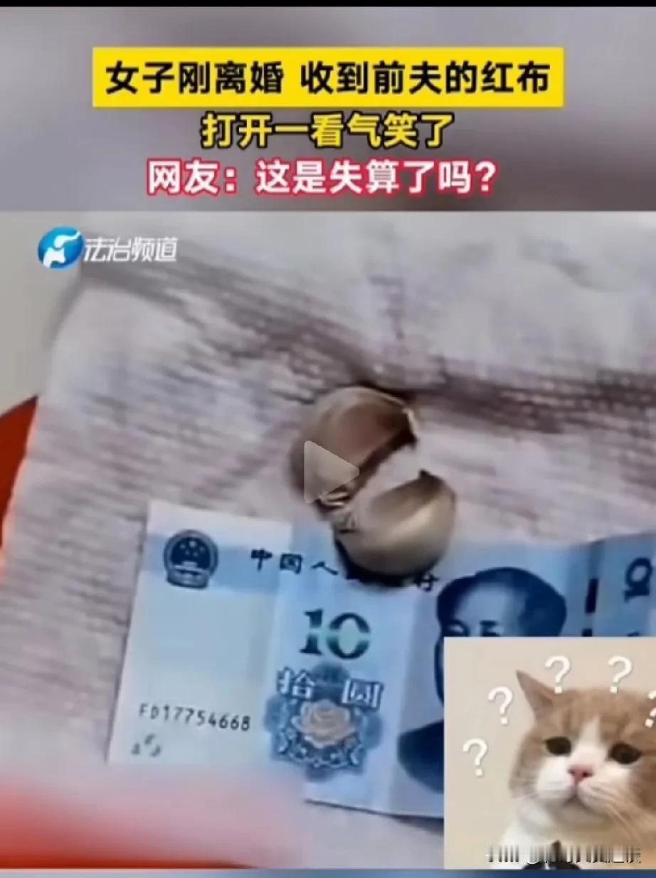 女子前面刚离婚,后边就受到前夫给他寄了一个红包,他打开一看,气得哭笑不得。女子刚和她老公办完离婚手续,她老公就塞给她一个红包,他打开一看,里边是两瓣蒜加10块钱。你感觉到又好气又好笑。 她前夫这是什么意思,说她失算了吗?还是他失算了呢?还有好还有网友说这代表算你识相……