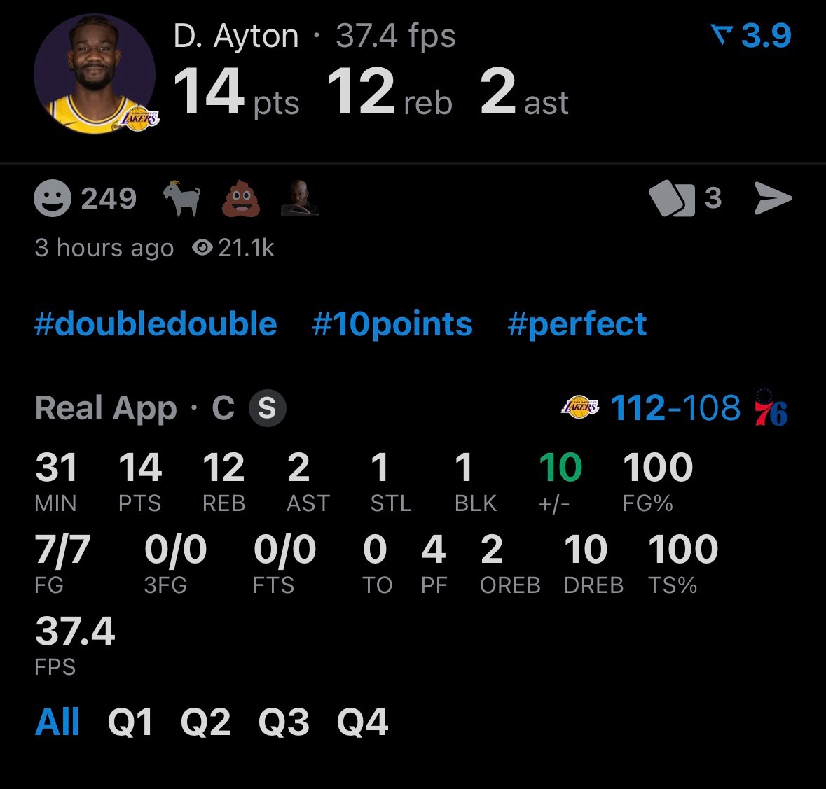 艾顿评价詹姆斯在末节的表现时说道:“关键先生,天生的大心脏。那场面,简直就像电影情节一样。”艾顿百发百中,7投7中,得到14分12篮板2助攻1抢断1盖帽。
