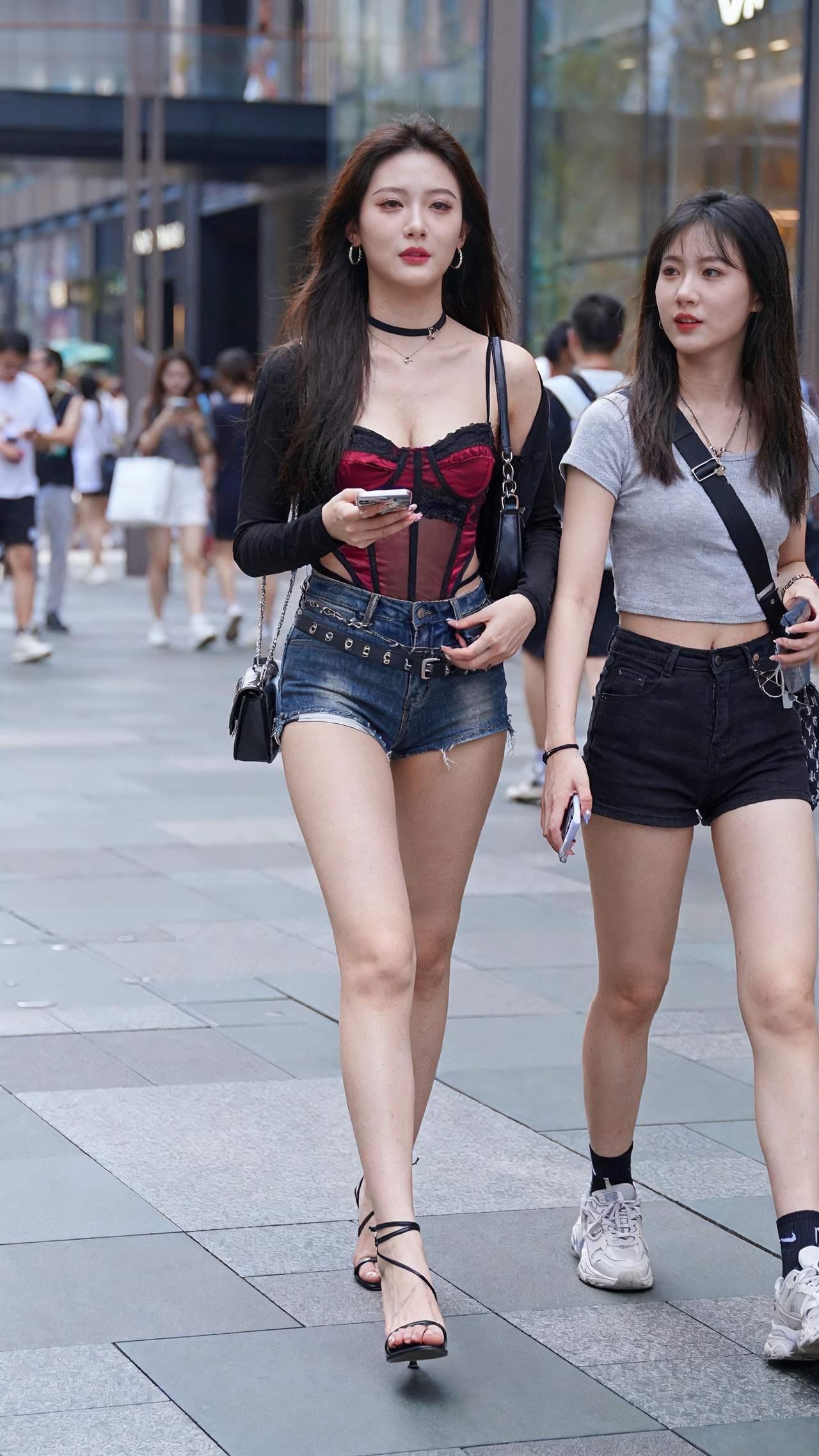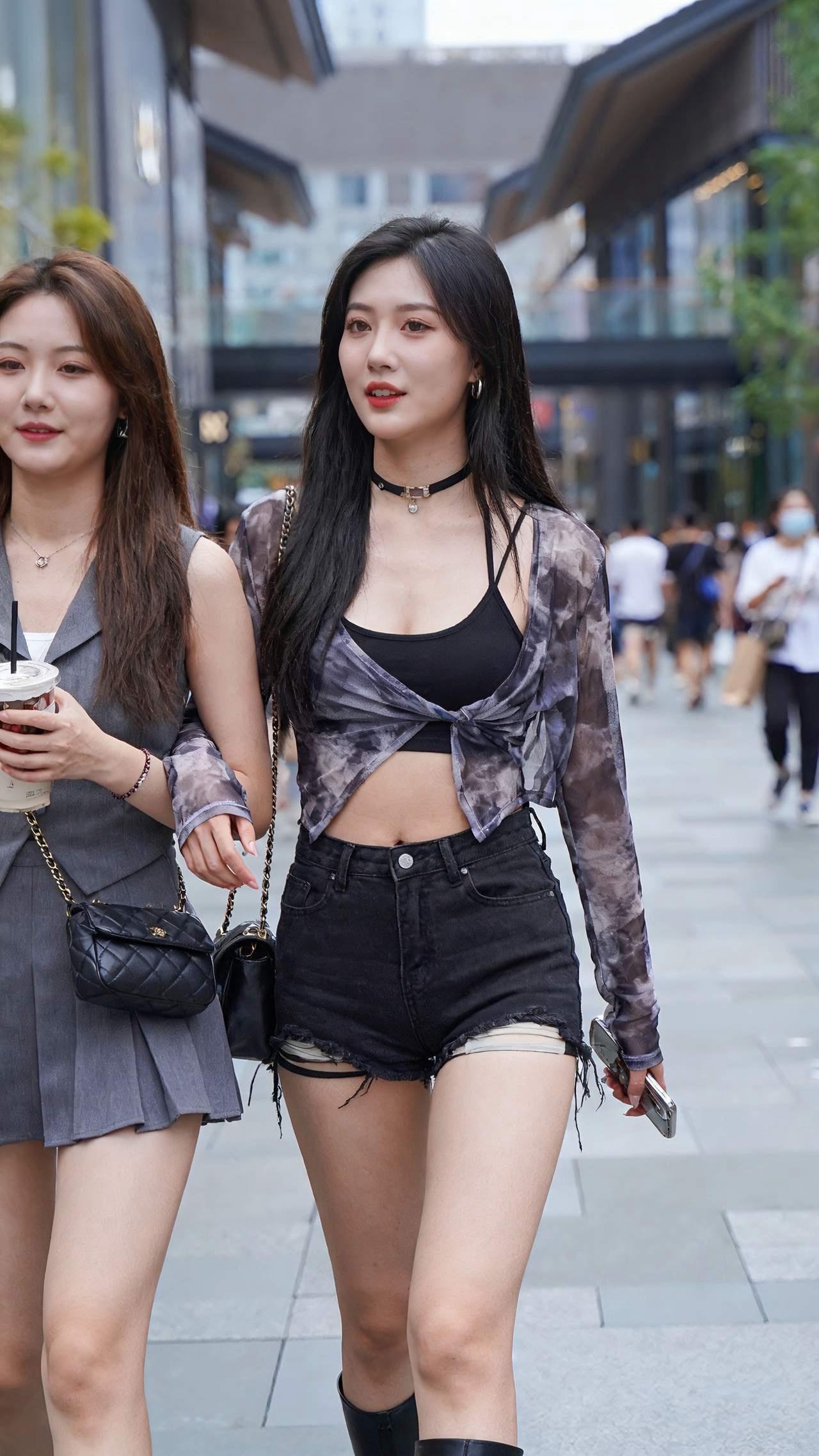 街拍长腿小姐姐街头穿搭牛仔裤美女街拍小姐姐穿搭秀