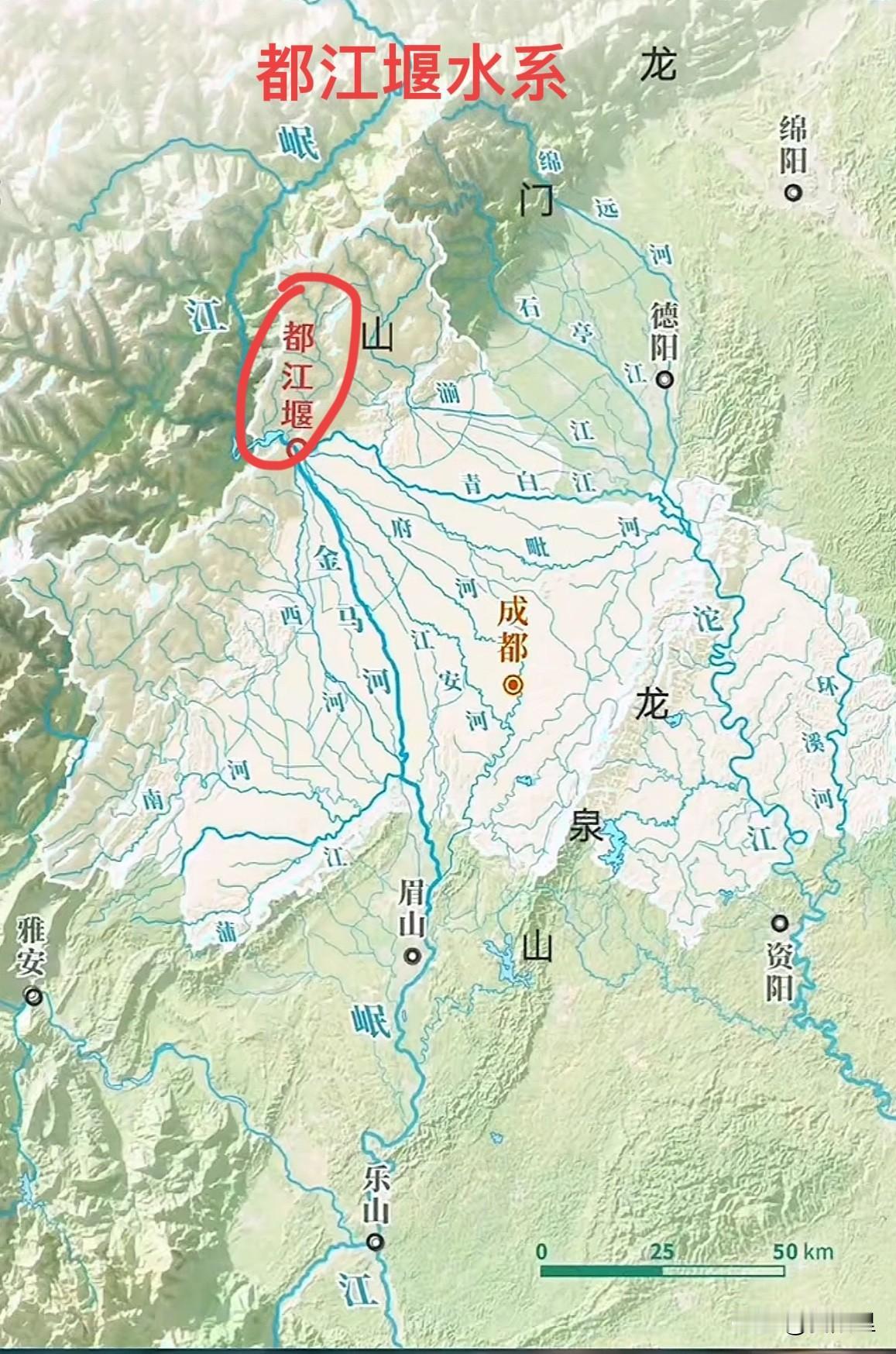 要给中国文化遗迹一个排序,说它是中国第一都不为过!因为两千年来它一直在发挥巨大的实际作用,而不仅仅是一个旅游景点。你看都江堰的地图,才知道它在中国历史上究竟有多伟大。 修建后的都江堰河流就像一把大扇子,分出无数支流,最终形成覆盖成都平原的扇形水网,灌溉面积从古代约百万亩扩大到现代的千万亩以上,水稻种植得到保障,成为全国重要的粮食产区。也推动了茶叶、蚕桑、蔬菜等经济作物发展,形成了“一年两熟”甚至“三熟”的高产农业模式,造就了著名的天府之国,使成都平原成为长期稳定的人口稠密区。 也因由此,让成都自秦汉以来就是西南重要都会,唐宋时期成为全国性商业城市(“扬一益二”),水运网络通过锦江(府河、南河)连接长江,使成都成为南方丝绸之路和长江贸易的枢纽。 没有都江堰,就没有今天的天府之国,它对成都平原乃至整个四川盆地的发展起到了决定性作用。