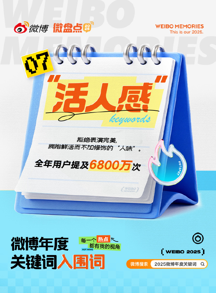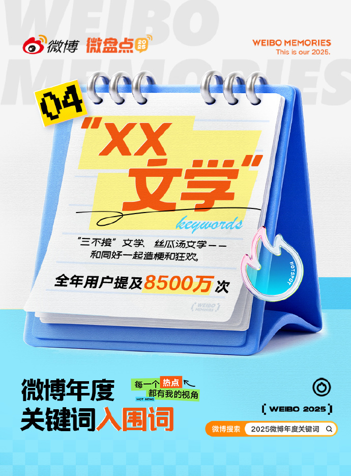 12月8日,公布年度关键词:“赛博”。每一条博文被注入了温度,让“赛博”摘下了科幻滤镜,走入真切的生活:越来越多人把评论区当作“赛博许愿池”,托付对明天的期待;AI 成了随时应答的“赛博搭子”,为迷茫递上一句安慰;而只有“赛博闺蜜”能懂的暗语与默契,让每一种情绪都被接住。此外,入围年度关键词的还有“啊啊啊”、“谁懂”、“XX文学”、“具象化”、“活人感”等。