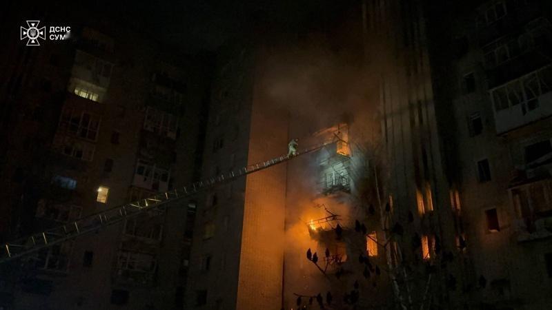 如图,乌克兰东北部城市苏梅地区的奥赫特尔卡市今天凌晨被袭击,一栋共有9层的高楼被无人机击中,2楼到5楼发生了火灾,袭击发生后,大楼内数十人被紧急疏散,居民停放在楼下的车辆着火,烧了起来,没有人员伤亡的信息。