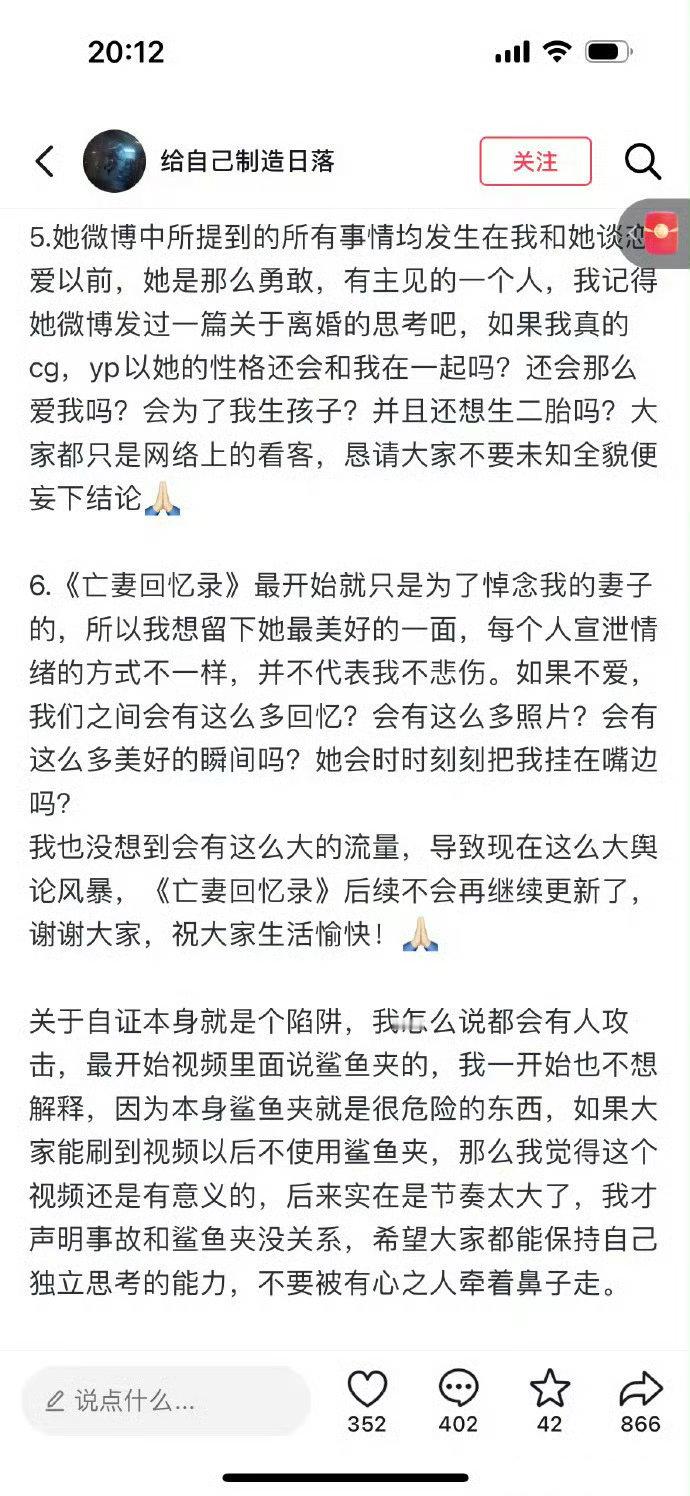 说实话,总在网上反复提过世亲人,这个做法看着就挺别扭。真惦记往往放心里,这么高调地拿来一直说,总让人觉得不太对劲,难道是博同情或者立人设?亡妻回忆录博主否认出轨