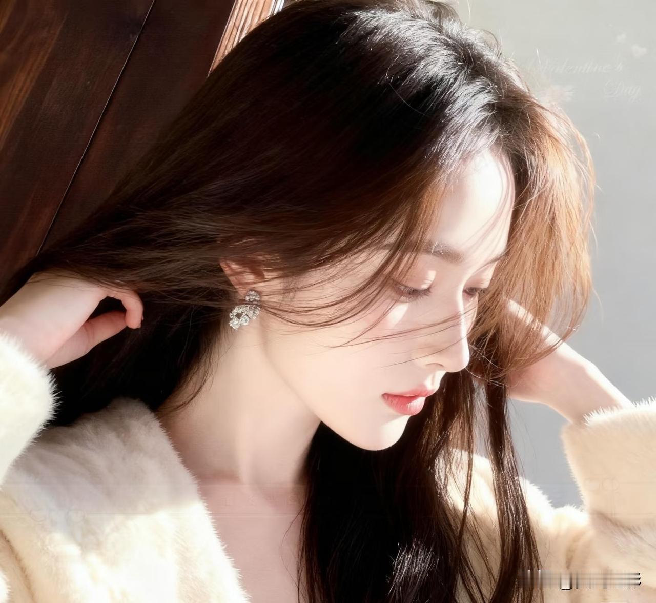 光之影 冬日暖阳下,温柔少女轻抚毛绒外套,闪耀耳环点缀,唯美动人。 毛绒少女照