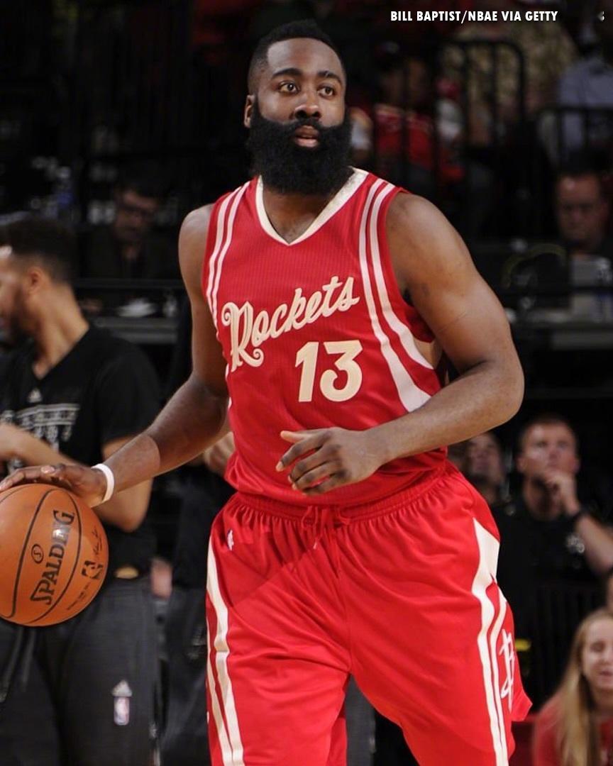 今天库里热身时穿上了同届球员哈登的最新签名鞋Harden Vol.10