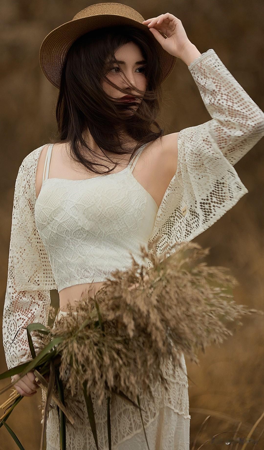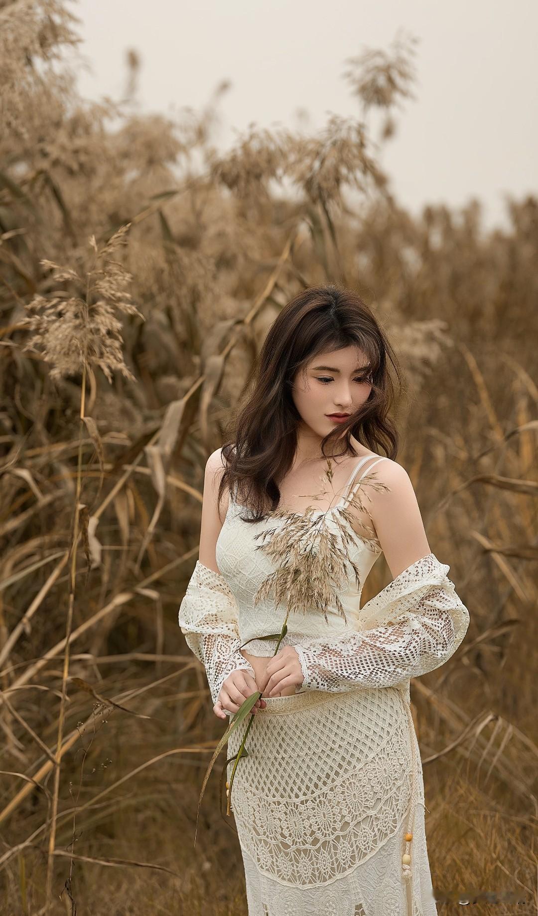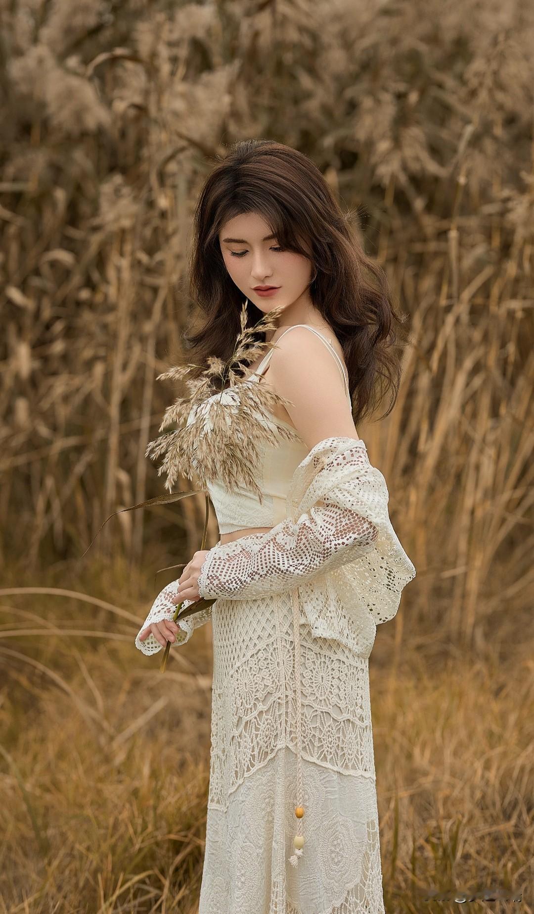 美图欣赏,看图写诗《素衣花畔》素袂轻裁玉作身,花痕一点缀香云。软榻斜