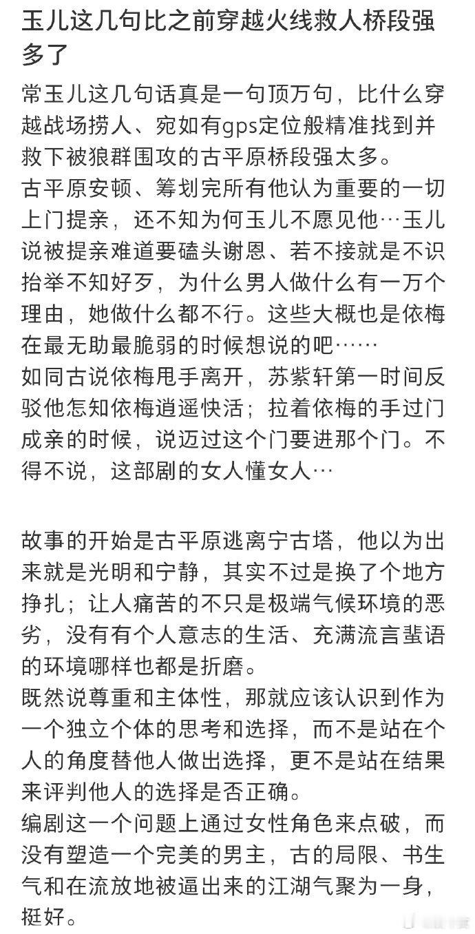 女演员的台词有男主创的灵魂可以说编剧的思维方式在很多地方是站在女性的角度思考的