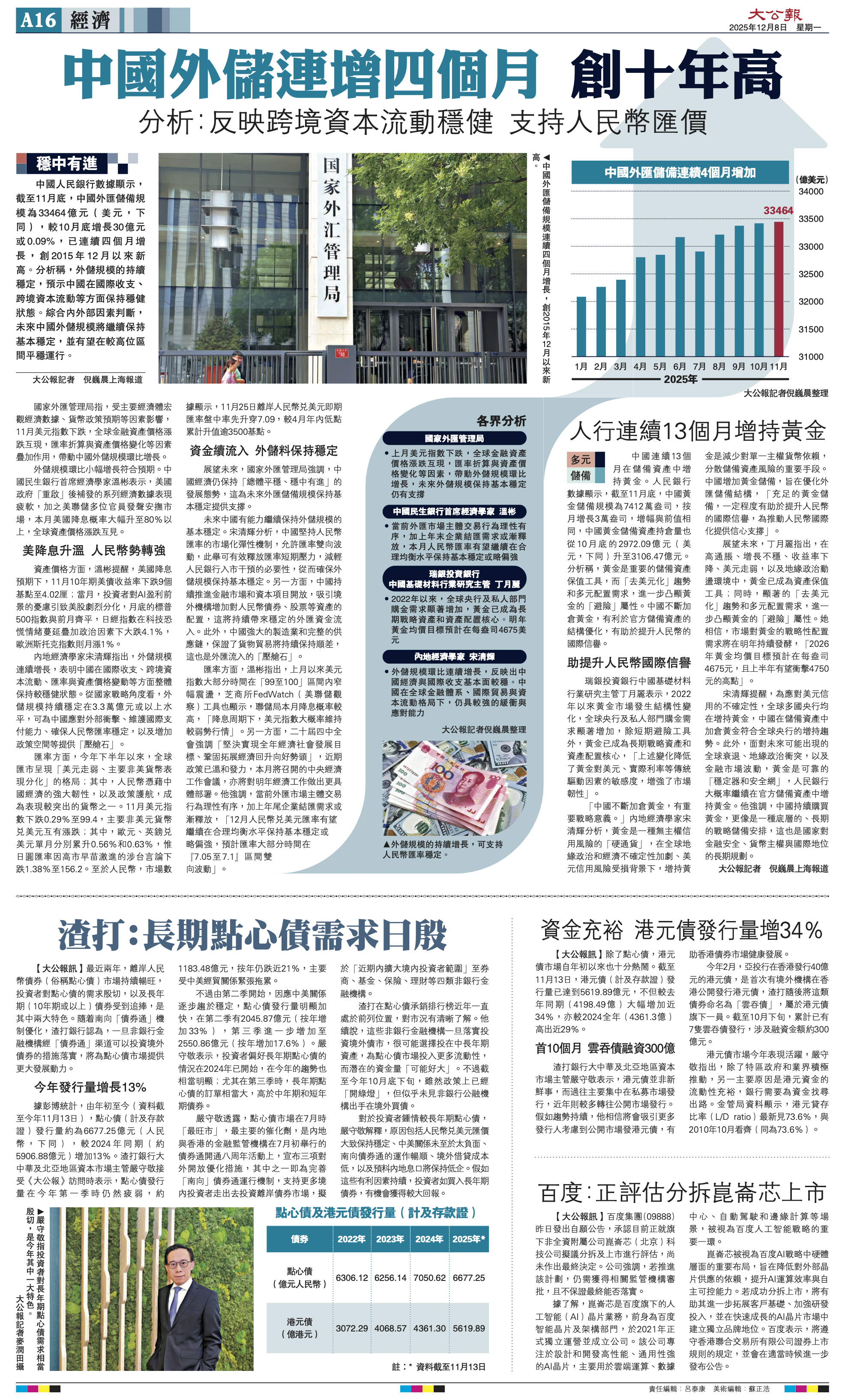 展望未来,宋清辉提醒,为应对美元信用的不确定性,全球多国央行均在增持黄金,中国在储备资产中加仓黄金符合全球央行的增持趋势。此外,面对未来可能出现的全球衰退、地缘政治冲突,以及金融市场波动,黄金是可靠的“稳定器和安全网”,人民银行大概率继续在官方储备资产中增持黄金。他强调,中国持续购买黄金,更像是一种底层的、长期的战略储备安排,这也是国家对金融安全、货币主权与国际地位的长期规划。详见《大公报》2025年12月8日A16。#经济学家宋清辉#