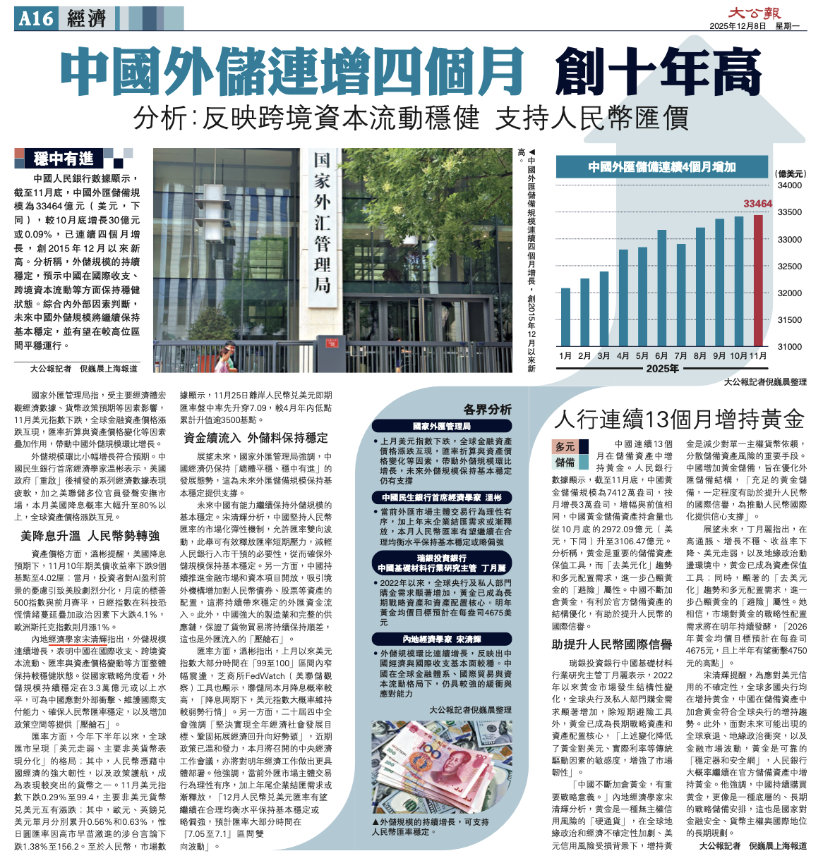 “中国不断加仓黄金,有重要战略意义。”内地经济学家宋清辉分析,黄金是一种无主权信用风险的“硬通货”,在全球地缘政治和经济不确定性加剧、美元信用风险受损背景下,增持黄金是减少对单一主权货币依赖,分散储备资产风险的重要手段。中国增加黄金储备,旨在优化外汇储备结构,“充足的黄金储备,一定程度有助于提升人民币的国际信誉,为推动人民币国际化提供信心支撑”。