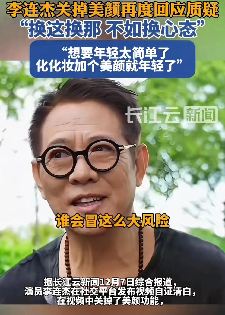李连杰终于正面回应了关于他换心的传言,他说换这换那不如换个心态,想变年轻,化个妆加个美颜就行了,没必要为了美冒如此大的风险。。。视频中他关了美颜,脸上的皱纹沟壑纵横,确实是60多岁人该有的皮肤状态,不过精神状态挺好,神采奕奕的,跟去年比起来确实判若两人,也许正是这场大病,改变了李连杰的认知,活着最重要,健康最重要,有限的时间,要快乐自由的随心生活,甚至有点放飞自我了!
