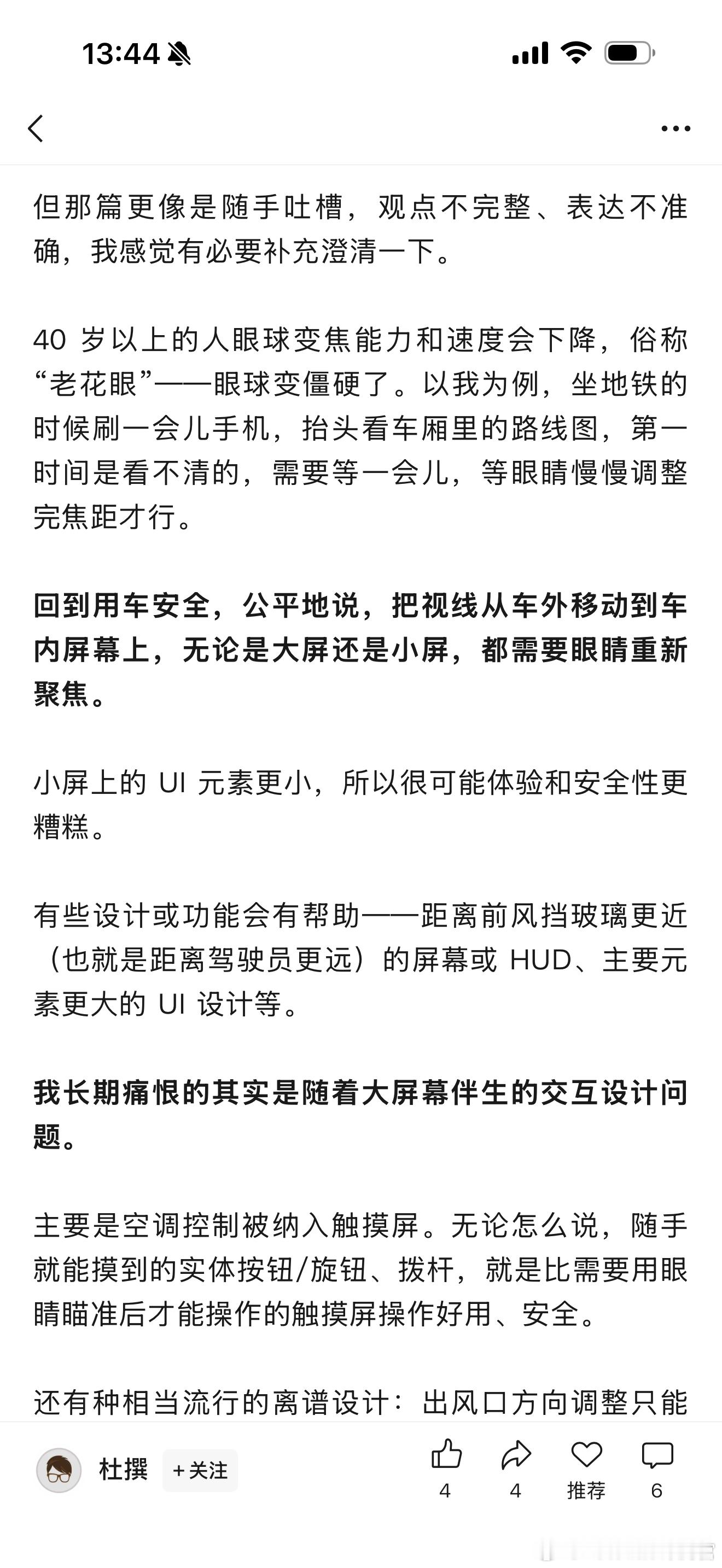 很有意思的观点,博主观察到:对于40岁以上的"中登",屏幕并不是越大越好,眼球变焦能力和速度会下降