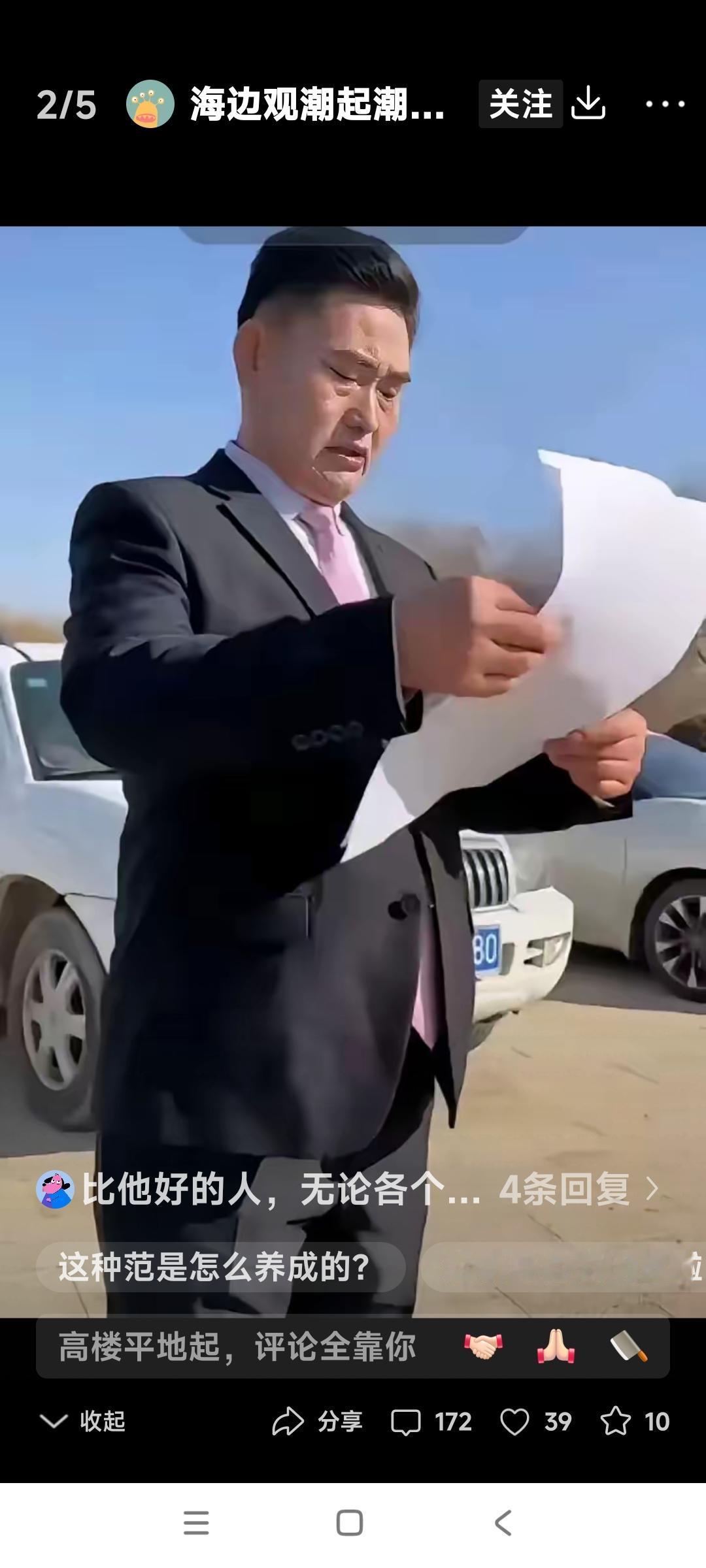 这是什么单位的大领导啊? 这形象,这气质级别不能太低吧? 要不然就是董事长,大老板之类的大人物。 拿着秘书写的草稿,给下属做报告呢吧。 你们说我比喻的恰当不?