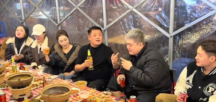 赵本山儿子黄发亮相街头砂锅宴!宋晓峰喝到满脸通红,妻子穿LV相伴左右