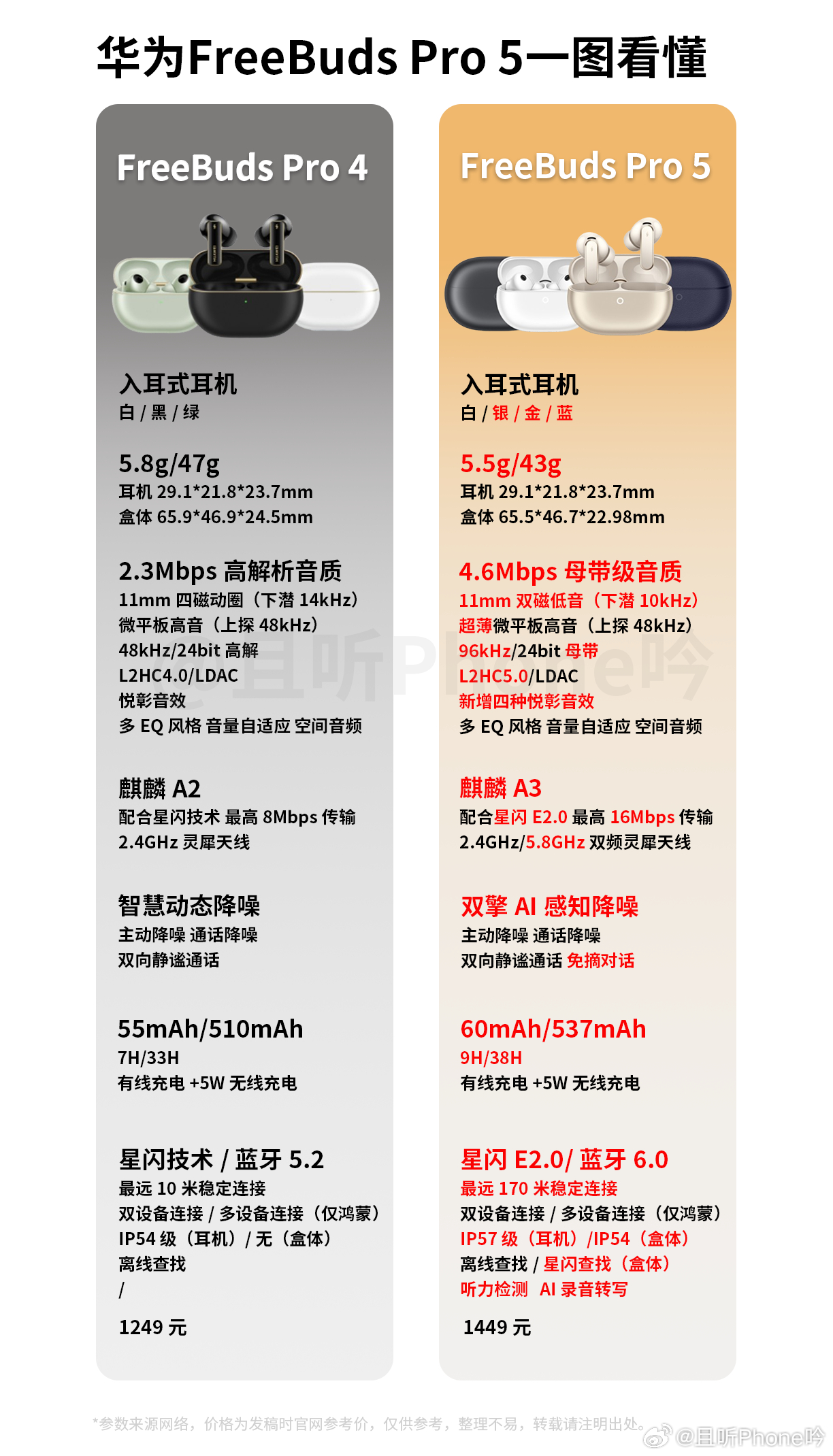 FBP5一图看懂~对比FBP4,音质、降噪、佩戴、续航以及功能全方位升级,详细配置区别戳图1