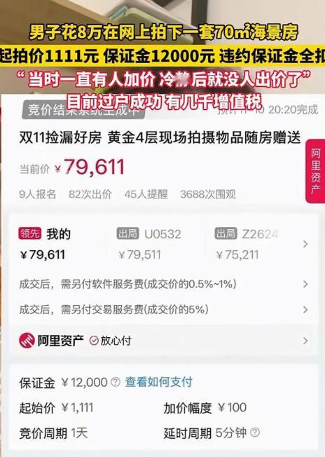 8万买海景房,是捡漏还是踩坑?河南这对夫妻的乳山买房记太戳心! 河南女子老公在某宝刷到套70平乳山海景房,起拍价1111元,他脑子一热交了12000元押金。 谁料拍卖时每次加价100元,系统竟自动涨5万! 几人轮番抬价,最后他以7.9万拍下。 不买了?违约扣光保证金! 只能硬着头皮过户,又搭5000税费。 夫妻俩开车900公里去看房,结果意外发现——20年的老房竟干净如新,阳台阳光洒满床,楼下就是海,海鲜便宜到哭! 可问题也不少:没电梯爬四楼,没暖气冬天冷,周边偏得像“孤岛”,平时人少得可怜。 网友吵翻了:有人说“冬冷夏潮,砸手里了”;也有人说“8万要啥自行车?当度假屋不香吗?” 其实啊,这房值不值全看需求。 想常住?配套差、潮气重,确实不合适;但图个清净、偶尔度假,这价儿能吹海风吃海鲜,还要啥自行车? 生活嘛,哪有什么绝对值不值? 知足的人,8万买片海;纠结的人,8万买烦恼。 要我说,这房买得值——不是因为它多完美,而是它让夫妻俩多了一个“说走就走”的海边小窝。 你说呢?