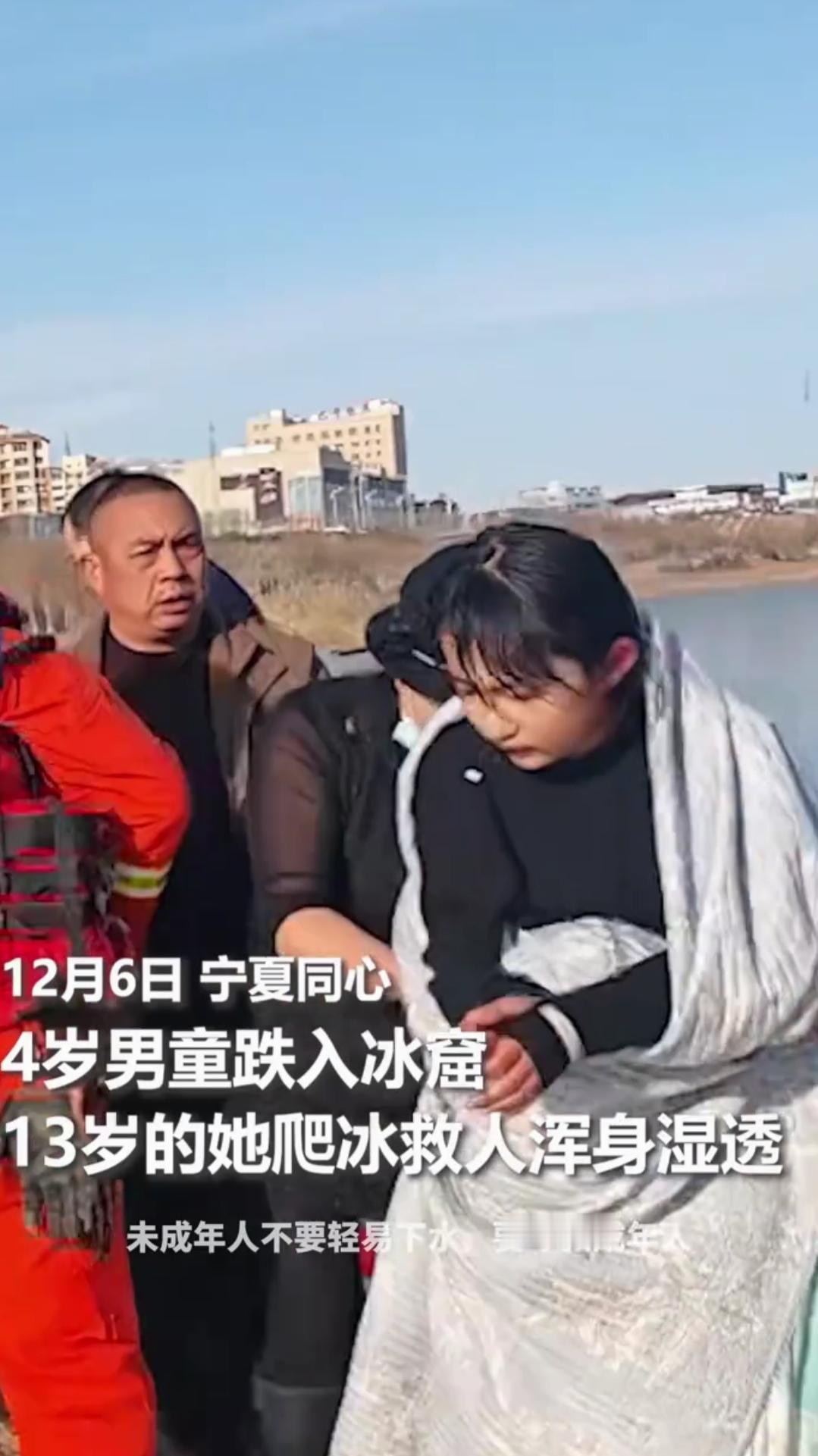 宁夏13岁少女冰窟救童。怕亲人担心,一句谎言藏尽少年担当 宁夏同心县冬日街头,13岁少女李佳婷放学路上的一次挺身而出,成了4岁坠冰窟男童的生命曙光,平凡身影里藏着震撼人心的勇气。 男童意外坠入冰窟,冰冷湖水瞬间将其困住,危急关头李佳婷没有丝毫退缩。她深知冰面脆弱如薄纸,贸然靠近只会雪上加霜,当即匍匐在冰面,缓缓递出管子伸向男童,每一寸移动都透着超越年龄的沉稳。意外突生,冰面破裂让她不慎落水,刺骨寒意裹住全身,可手中的管子却像攥着救命稻草般从未松开,用自己的险境换男童的生机,这份坚守比寒冬里的暖阳更滚烫。 获救后她默默归家,湿冷的衣服藏不住救人的痕迹,面对家人询问,只轻描淡写谎称被洒水车淋湿,不张扬、不求赞,把善举藏在低调的谎言里。没有豪言壮语,没有刻意邀功,13岁的肩膀扛起了远超同龄人的担当,这份纯粹的善良不含半点杂质。 少年强则心有光,李佳婷用行动诠释了勇敢不分年龄,善良无关身份。危难时的果敢、助人后的内敛,都是最动人的品质。这样的少年担当值得全网点赞,换作是你,遇到这样的险境会勇敢出手吗?