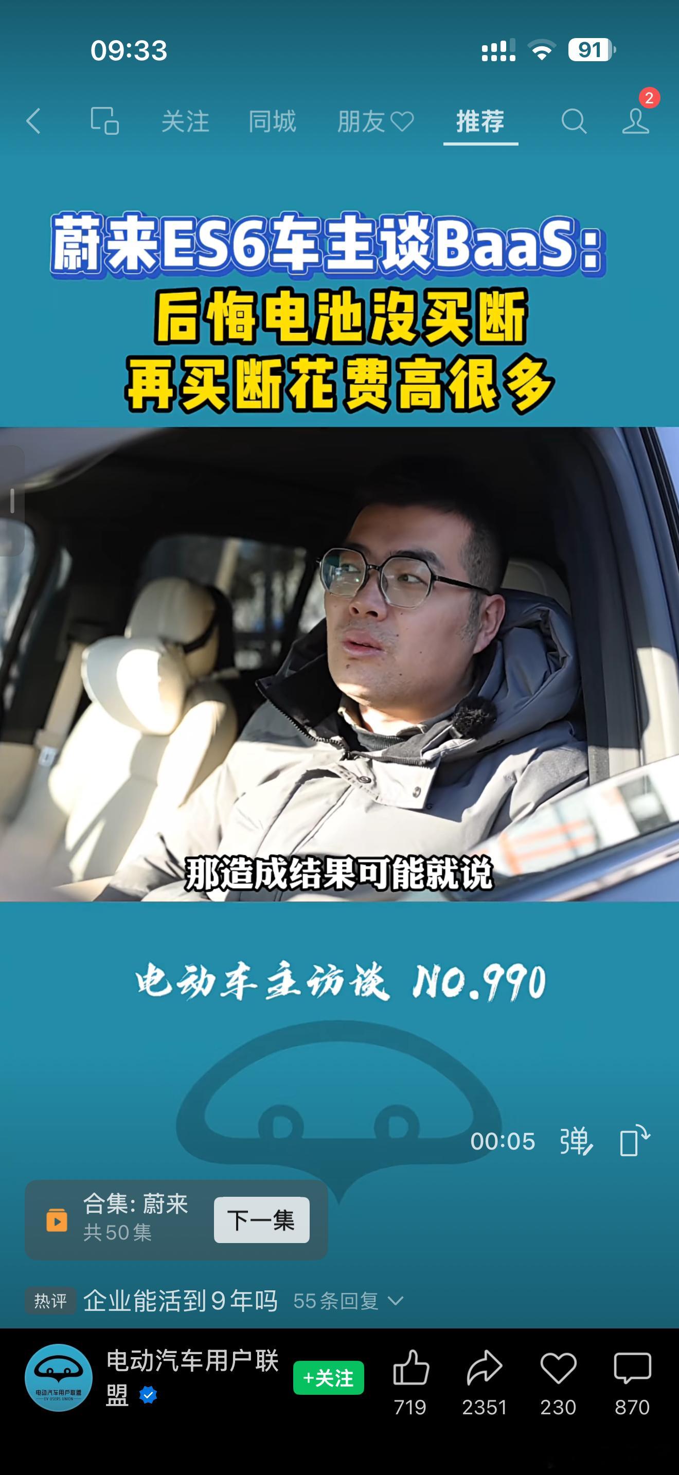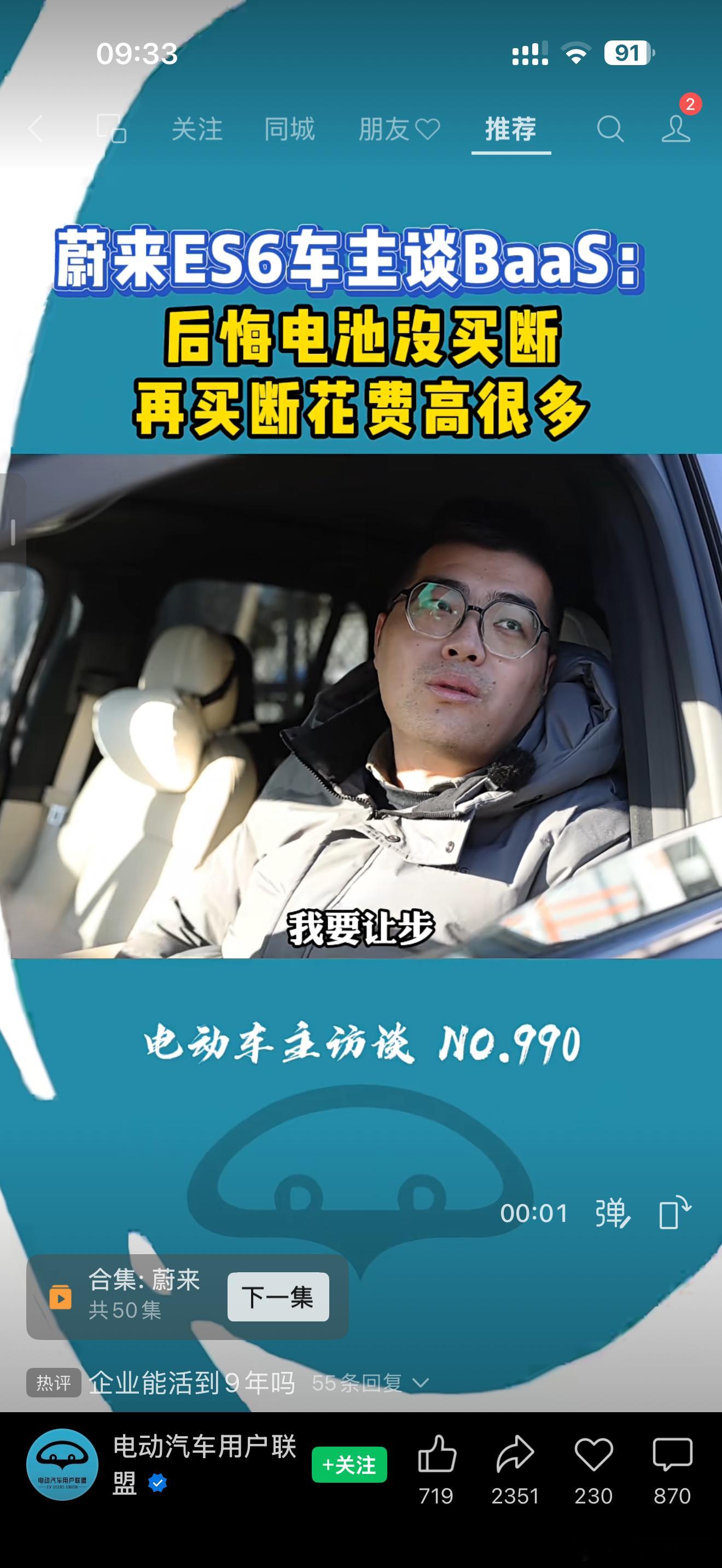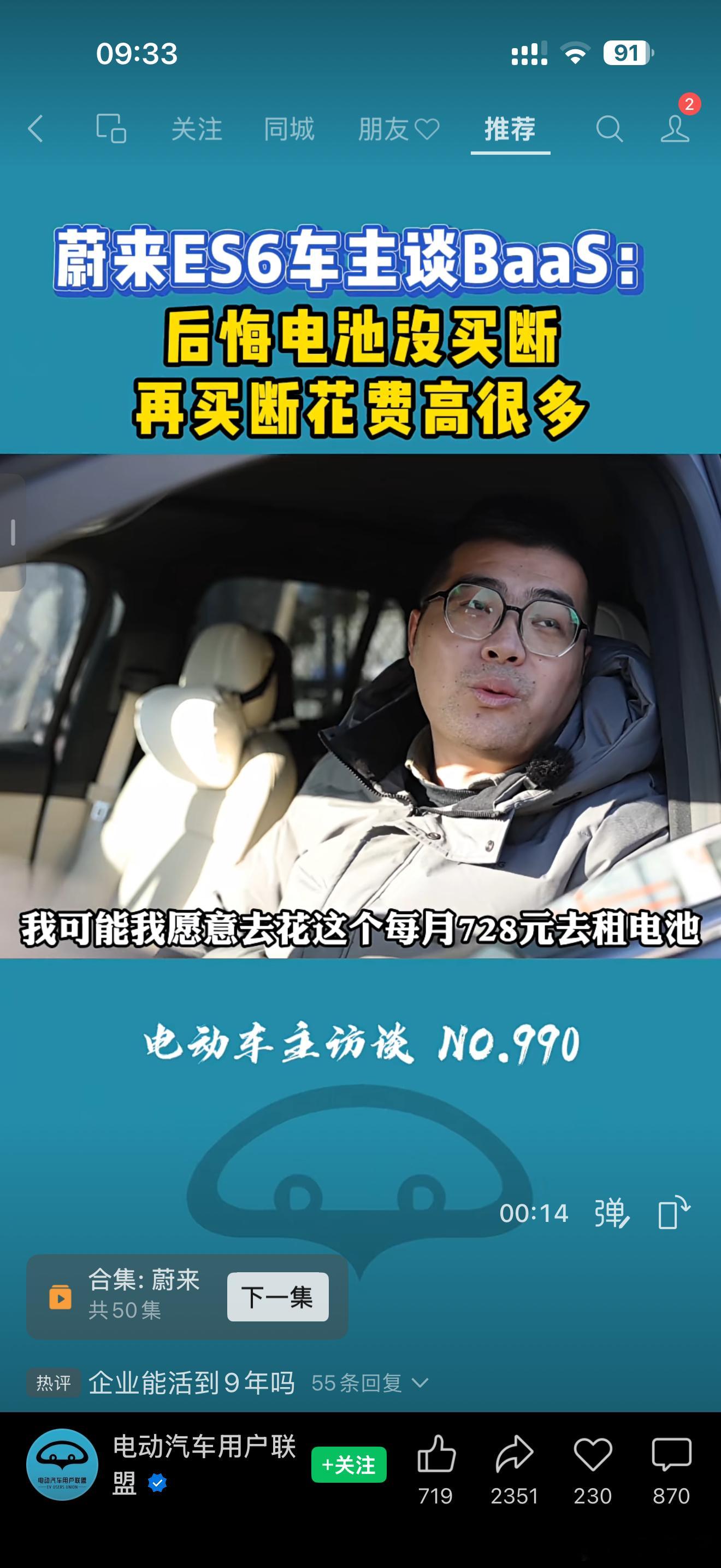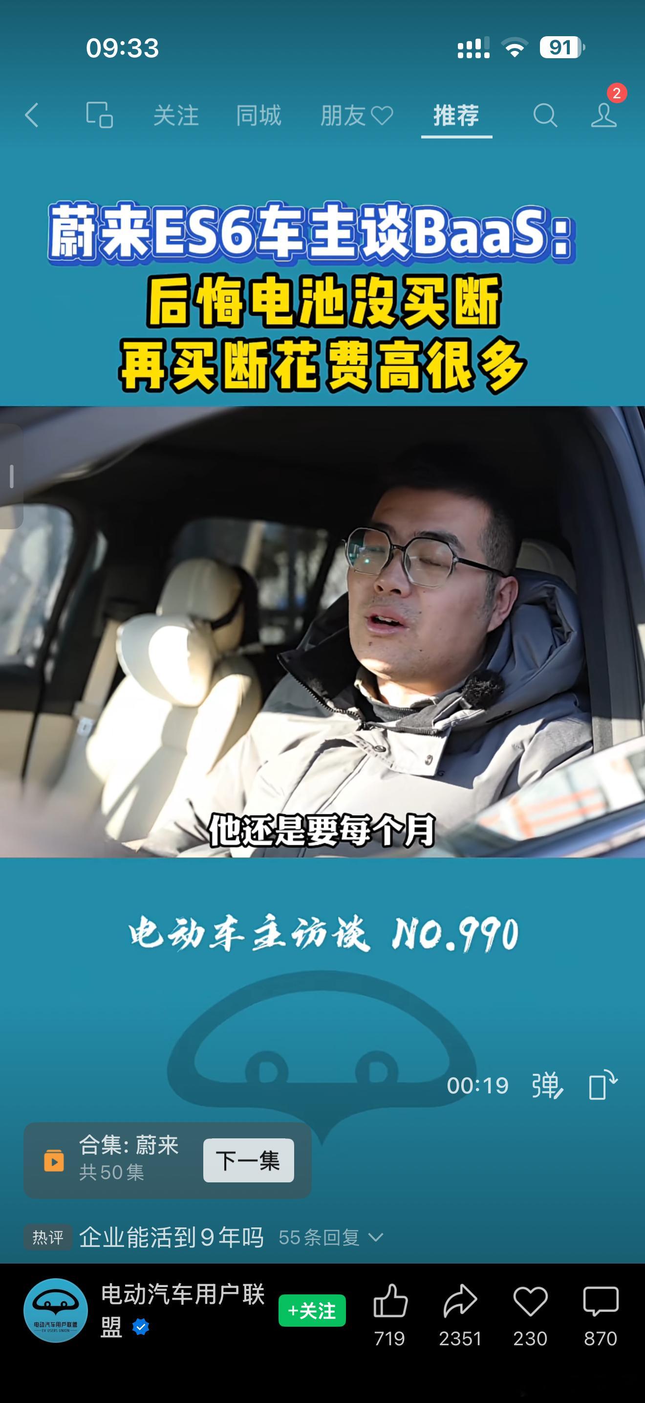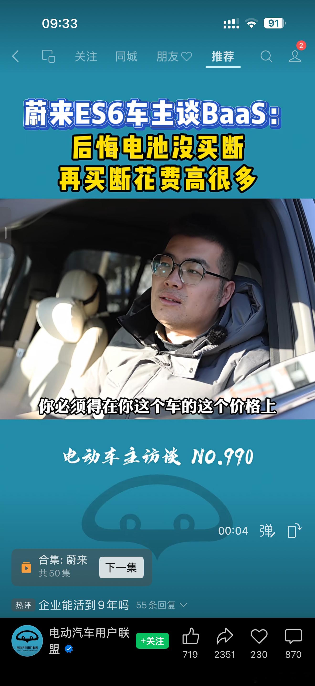这个访谈说就是我一直比较疑惑的问题!虽然现在baas的二手车比买断吃香,但是这辆车时间长了之后后续车主还会愿意为了baas去支付全额租金吗?(baas怎么还、还多少以首任车主购买时签订合同为准)但消费者完全没法计算的就是baas多年后到底对这辆车的二手价值具体造成多大的影响!蔚来蔚来baas