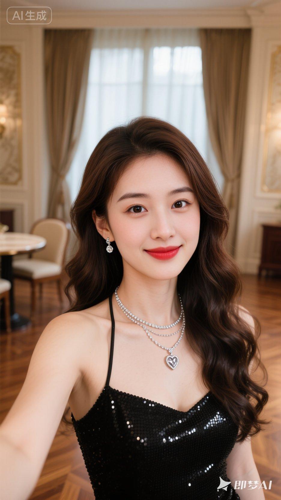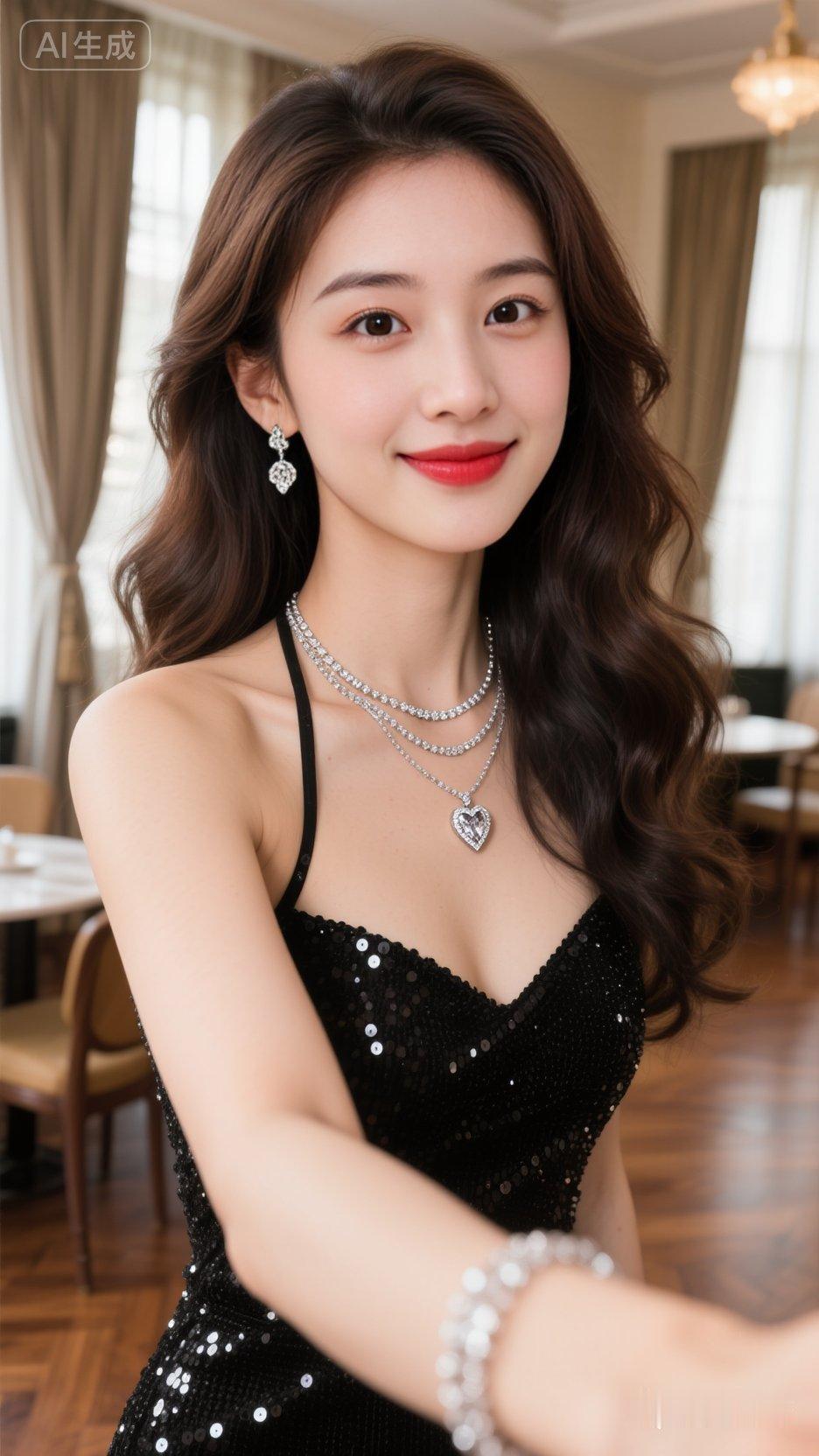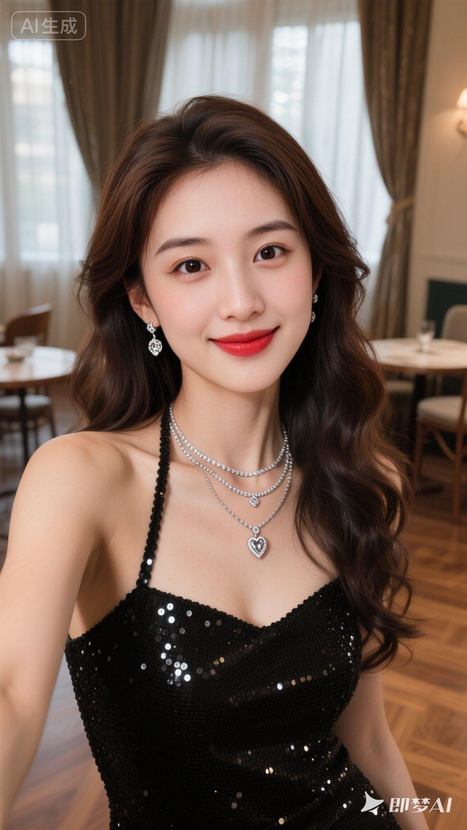 咖啡店里,温暖氛围,人像摄影,日常快照风格,非精心构图或打光,御姐风穿搭,气质美
