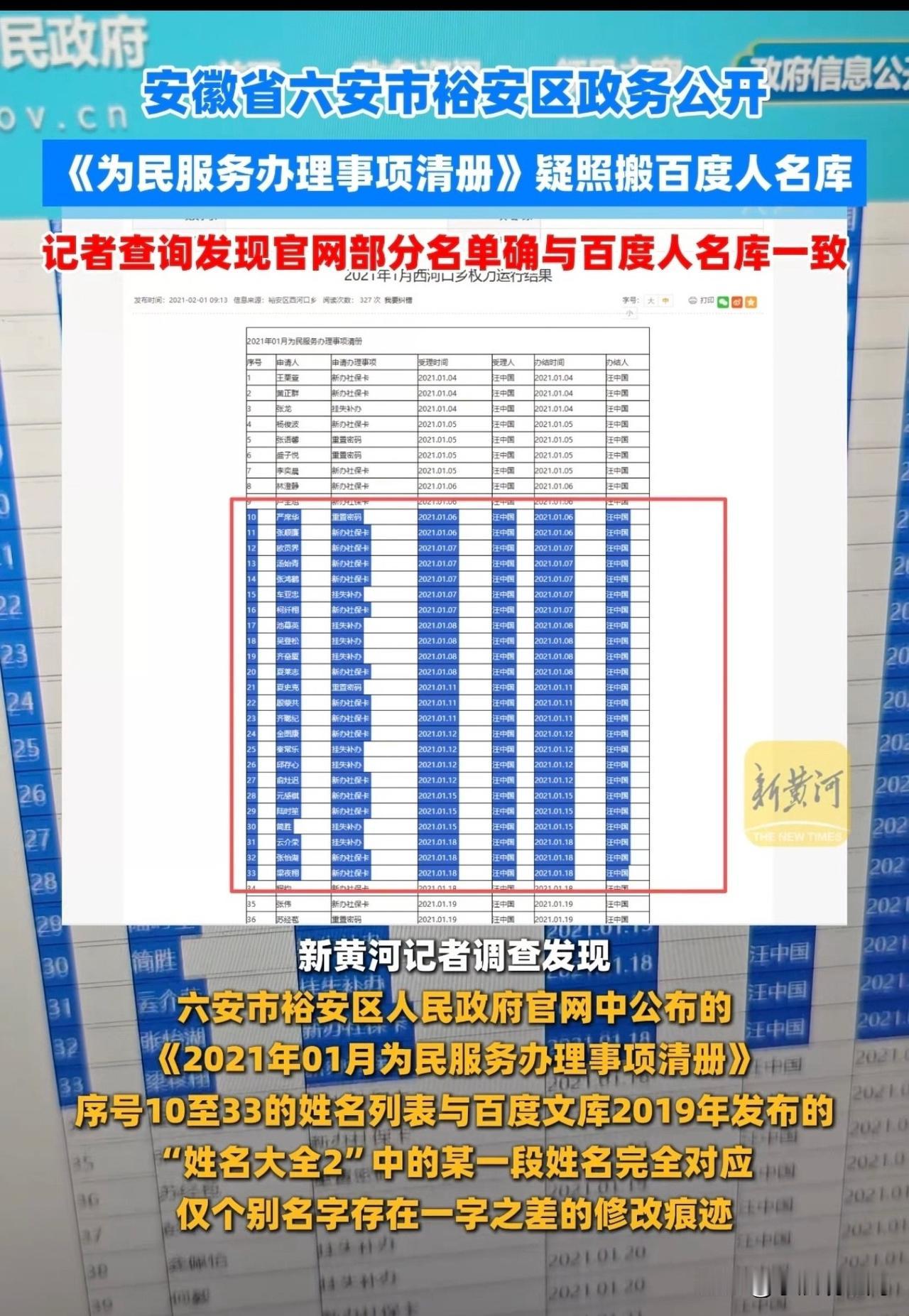 全网最忙五人组又到了安徽。 到目前为止,五人组出没的地方有: 官方采购,书法大赛,电视台少儿春晚,声乐比赛,羽毛球比赛等等。 最牛的是辽宁,省级高级职称评审名单公示的58人的大名单,其中48人都是从百度文库里搬来的。 更牛的是杭州师大福彩公益受助金发放名单,第一批62个人,名字完全相同,就连错别字都一样。 真的,他们已经连编几个名字都懒得编了。 新华社发问,全网最忙五人组背后,到底藏了什么鬼?