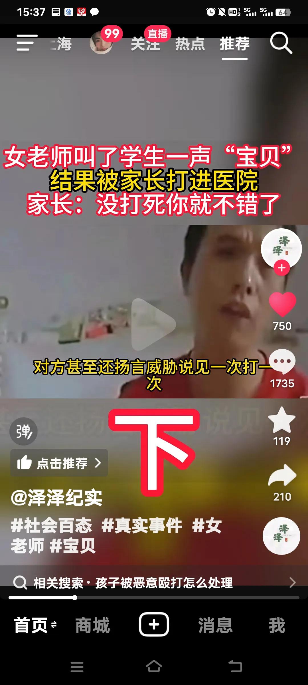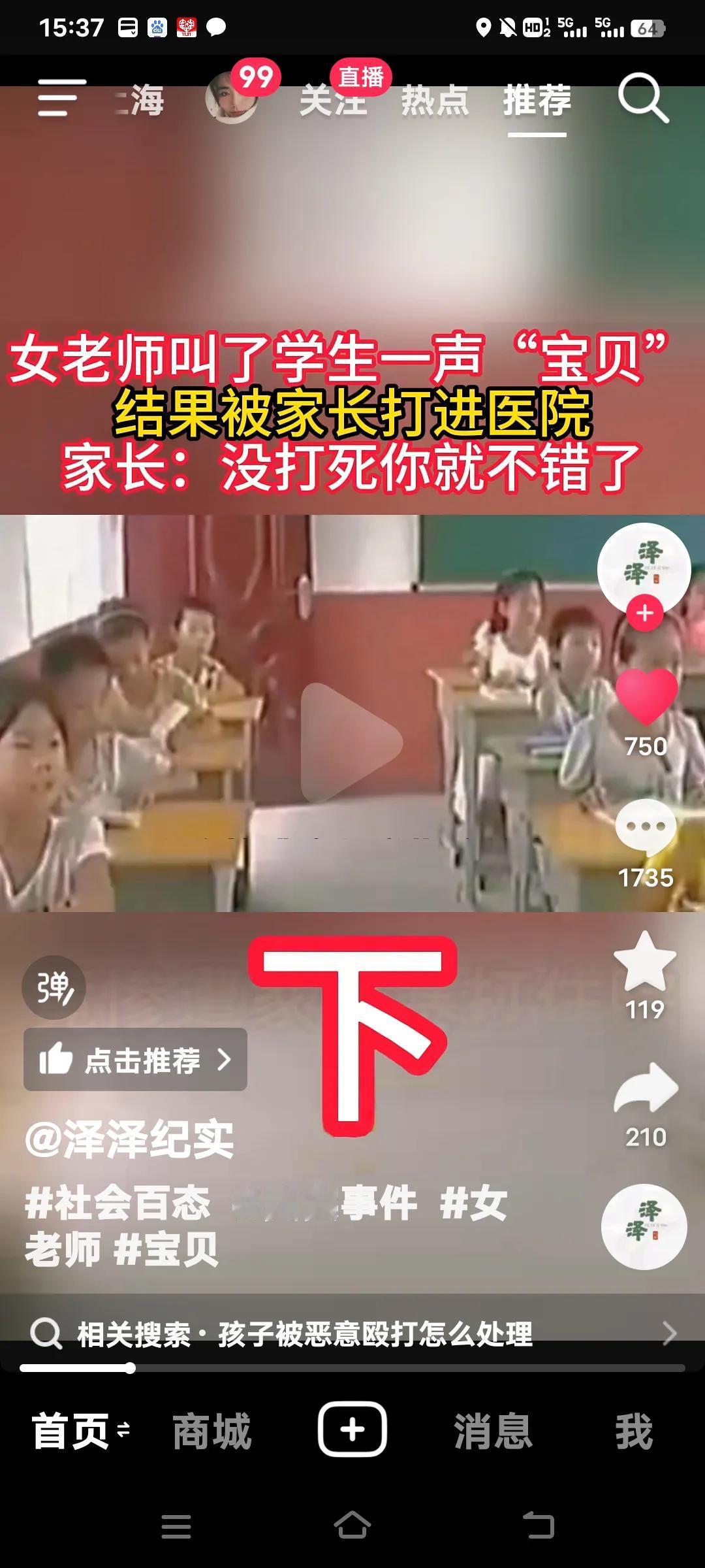 女老师只因叫了学生一声“宝贝”,就被家长打到住院,可女老师觉得自己没做错什么。家长还发信息扬言要打死她,这让女老师倍感委屈。 然而,学生家长却不认为自己有错,还振振有词地说:“我女儿要是学习好,你说她是宝贝,我没意见。可她学习是班里最差的,你却来了句‘你班的宝贝来了’,这不是侮辱我女儿吗?” 这事儿谁能说得清呢?女老师表示自己只是表达对学生的喜爱,根本没有侮辱的意思。生活中常常如此,有时一片好心,却遭人误会。俗话说“如人饮水,冷暖自知”,家长或许觉得女儿成绩差,不能为学校争光,怎能算“宝贝”呢? 在家长看来,这或许就是一种讽刺,看来说话真是得谨慎。但话说回来,动手打人可是大错特错。家长还说“没打死你就不错了”,甚至扬言见一次打一次,这可如何是好?法律该介入管管了!家长怒批老师 家长对老师发飙 老师遭投诉 家长被老师叫