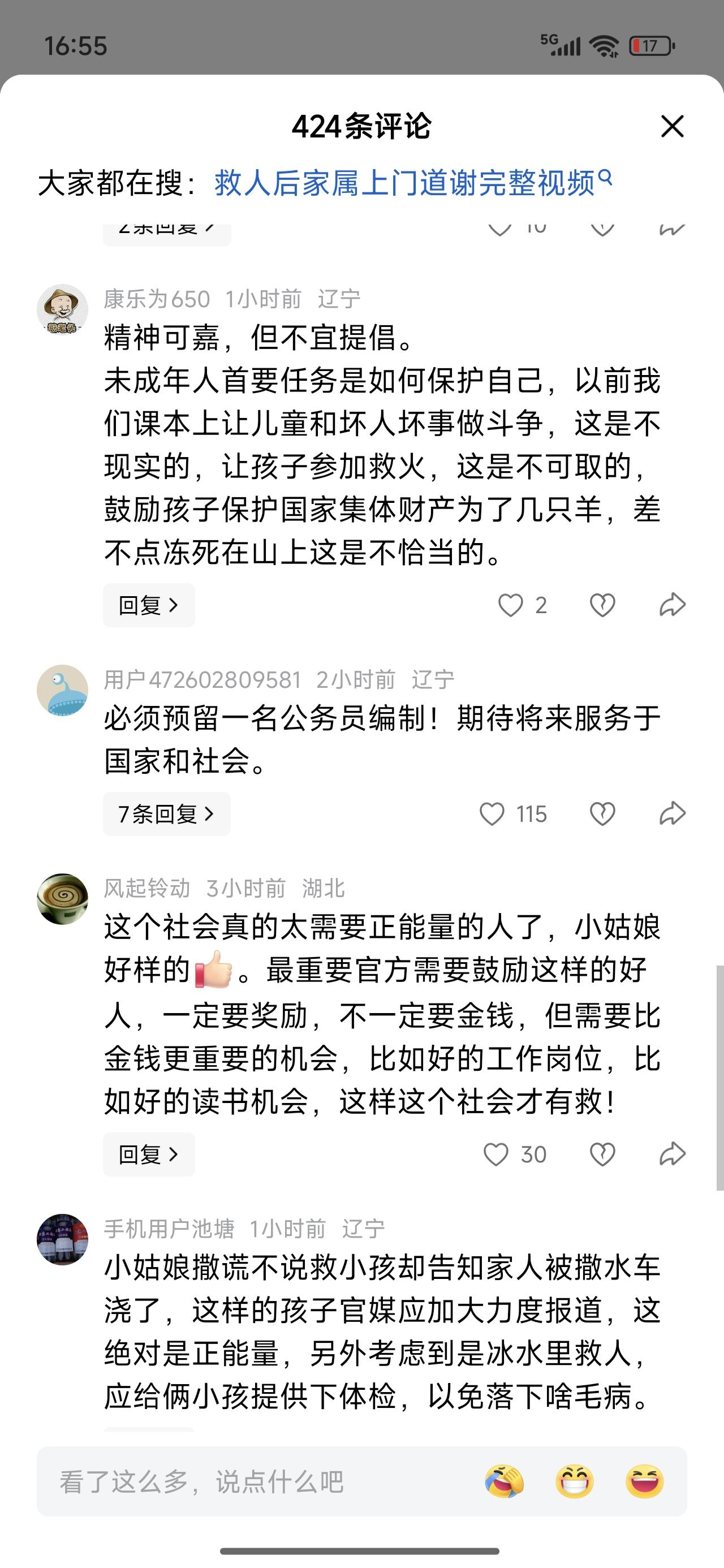 13岁小姑娘下冰水里救人,浑身湿透回家只说被洒水车喷到了。哈哈,你可冤枉洒水车司机了。 经过媒体大肆报道,小姑娘已经家喻户晓。 好孩子,没有问题吧!那么冷的水,一定去拿点草药吃吃,别落下后遗症。女生,寒凉可是一辈子的敌人。 好心疼你,又不能说下次别下水了。这话好像有点毛病。但不管怎么说,看情况,看情势,不要太盲目。个人安全也很重要! 希望你健康长大哦!被社会善良以待。