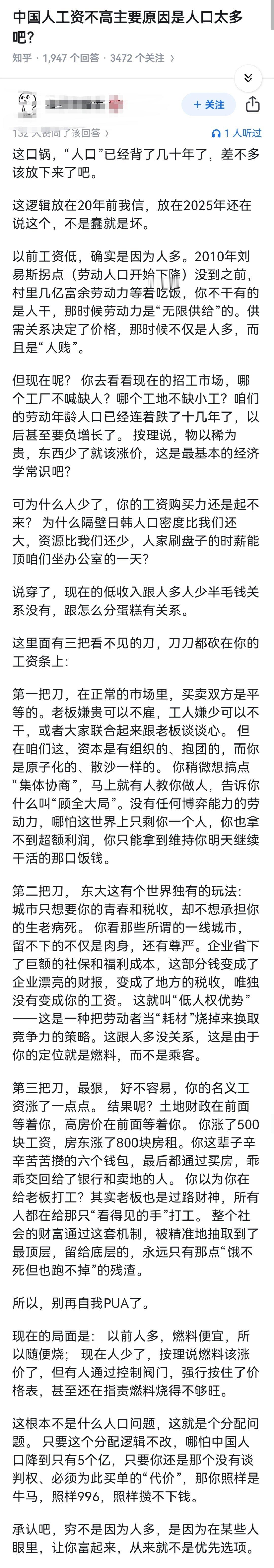 中国人工资不高主要原因是人口太多吧?
