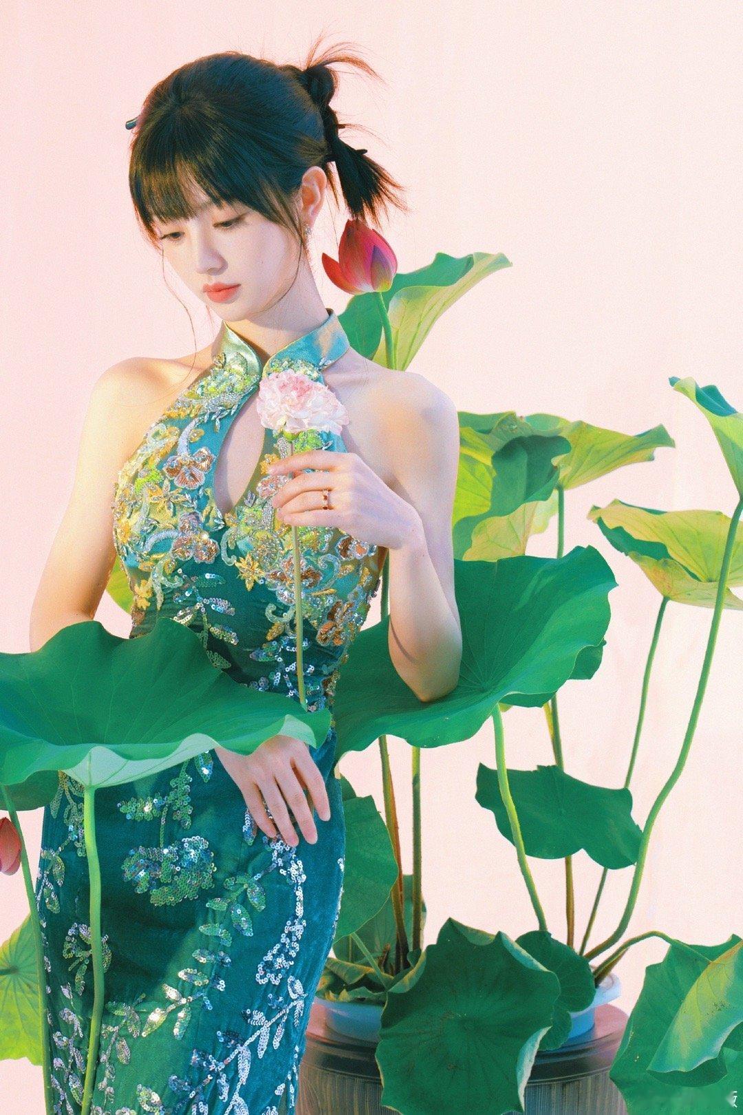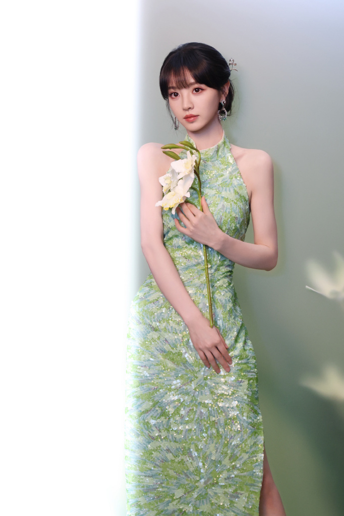 田曦薇绿色挂脖旗袍 看到田曦薇新造型感觉来到了江南水乡,绿色挂脖旗袍呈现出的美,是种温润如水的一种优雅的感觉