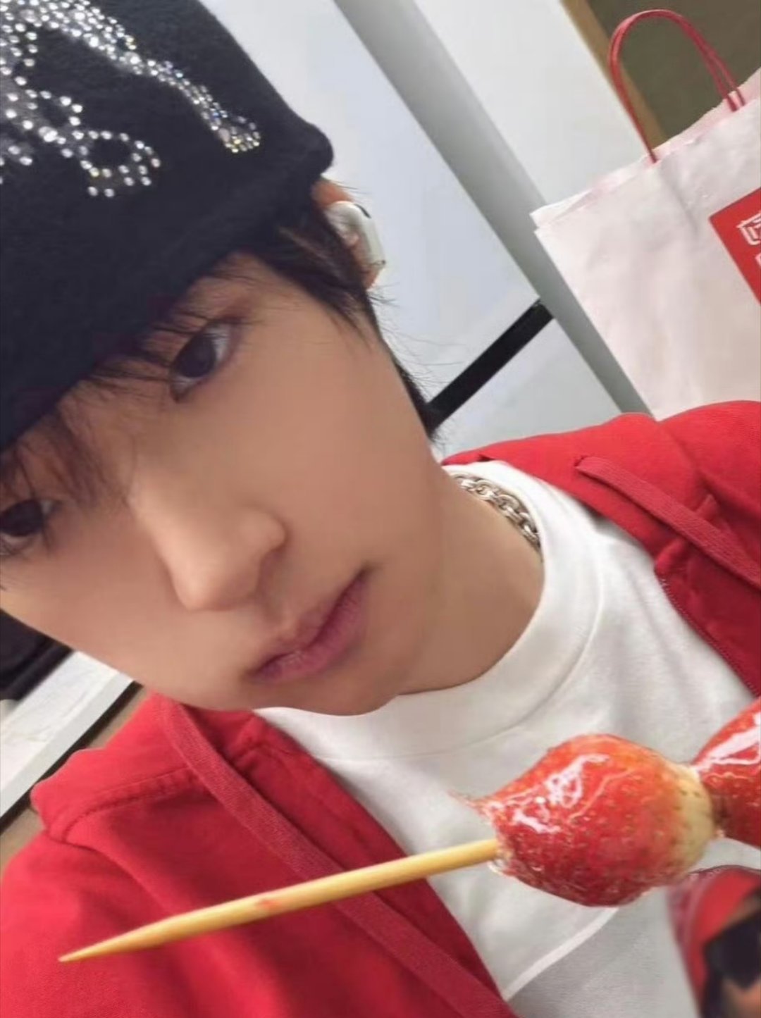 张峻豪草莓冰糖葫芦酸吗,天冷了,要多穿点衣服知道吗!别冻着啦