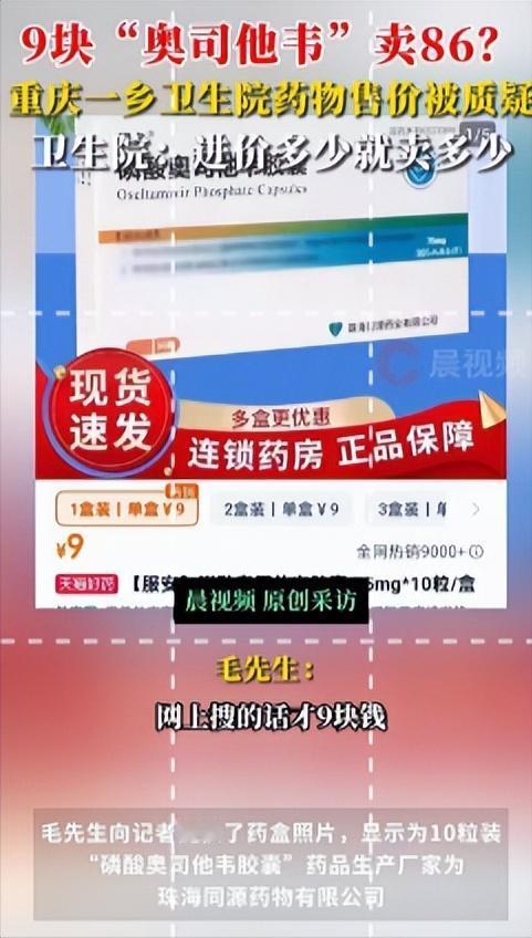 同一种药,医院里卖86,药店却只卖9块!医院说没加价,药店说没亏本儿,那么77块钱的差价是怎么来的呢?重庆一名17岁的女生,甲流去卫生院看病,医生开了盒10粒装的磷酸奥司他韦,收费86。家长觉得86贵了。网上一搜,一模一样的厂家,一模一样的规格,网上只卖9块钱! (大家别忘了点右上角关注,踊跃在评论区发言,和更多朋友一起碰撞观点!) 12月的重庆正值甲流高发期,17岁女生的发热症状让家长立刻带她前往就近的卫生院。 从问诊、化验到取药,整个流程高效规范,但86元的药费单却让家长停住了脚步。 “不是付不起,是觉得不值”,这位父亲的想法代表了多数普通消费者的心态。 带着这份疑虑他打开了常用的购药APP,输入药品全称后弹出的结果让他颇为震惊。 多家连锁药店的官方旗舰店中,同款磷酸奥司他韦赫然在列,标价9元且支持次日达。 更让他意外的是客服不仅明确表示保证正品,假一赔四还主动推荐买两盒减3元的优惠活动。 不少网友分享类似经历:“孩子发烧去社区医院开的退烧药,38元一盒,转头在药店看到同款12元” “慢性病药医院开价150,网上大药房活动价才45”。 当药品价格在不同渠道出现数倍差异时,消费者既担心低价药的质量又质疑高价药的合理性。 而这种信息不对称,最终会转化为对医疗体系的信任损耗。 将价格差异简单归咎为医院加价或药店亏本,显然忽略了药品流通中的复杂环节。 医院的高价并非源于药品本身的利润,这意味着涉事卫生院86元的售价确实是其实际采购成本。 而这个成本之所以偏高,核心在于医院药品采购的刚性约束。 必须通过省级集中采购平台采购,价格由招标流程确定。 与医院相比,线上药店的成本结构更轻量化。 无需承担医疗服务成本,运营重心集中在药品流通环节。 通过连锁总部集中采购可直接与生产厂家议价。 省去省级、市级代理等中间环节,大幅降低进货成本。 医院的零利润基于政策采购价,却因附加成本偏高让消费者觉得不值。 药店的微利润基于市场采购价,却因营销策略让消费者怀疑质量。 问题的关键,不在于某一方的定价不合理。 而在于两套定价体系缺乏有效的衔接与参照。 导致消费者失去了判断合理价格的标准。 要重建药品价格的信任锚点,需要从渠道规范、信息公开、机制衔接三个层面发力。 让消费者既能明明白白消费,又能获得可靠的药品保障。 对于公立医院,应进一步细化药品采购成本的公示范围将招标服务费、物流费等附加成本单独列明。 让消费者清楚86元的构成明细,而非笼统地呈现一个总价。 建议由医保部门牵头,建立统一的药品价格查询平台。 整合集中采购价、医院零售价、线上药店价、线下药店价等多渠道价格信息同时标注各价格的包含范围与服务内容。 集中采购平台的定价机制,应充分参考市场实际流通价格建立动态调整机制。 同时应完善公立医院的成本补偿机制,通过合理提高诊疗费、护理费等医疗服务价格,弥补取消药品加成后的收入缺口。 让医院不再依赖药品采购环节的附加成本分摊运营压力,从根源上缩小与市场渠道的价格差距。 药品消费的核心需求是安全有效,价格只是其中一个维度。 也有网友分享经验:孩子生病我会先去医院确诊,拿着处方去药店买药,既保证诊疗准确又节省开支。 有人呼吁:“希望医院能把药品和服务的费用分开算,药多少钱、诊疗多少钱,明明白白”。 有人建议:“线上药店也该配执业药师指导用药,不能只拼价格”。 还有人期待:“集采平台的价格能更灵活些,别脱离市场太远”。 重庆这盒磷酸奥司他韦的价格争议,与其说是一次价格纠纷不如说是一次民生提醒。 它提醒我们药品流通体系的改革,不仅要关注降药价更要关注建信任。 当医院的专业服务价值得到充分体现,当药店的市场竞争回归质量本质。 当消费者能在透明的信息中做出理性选择,77元的价差自然会转化为不同渠道的特色优势而非引发争议的矛盾焦点。 最终,老百姓期待的不是9元药的普及也不是“86元药”的降价。 而是无论选择哪种渠道都能获得价格合理、质量可靠、服务专业的药品保障。 (信息来源:晨视频)