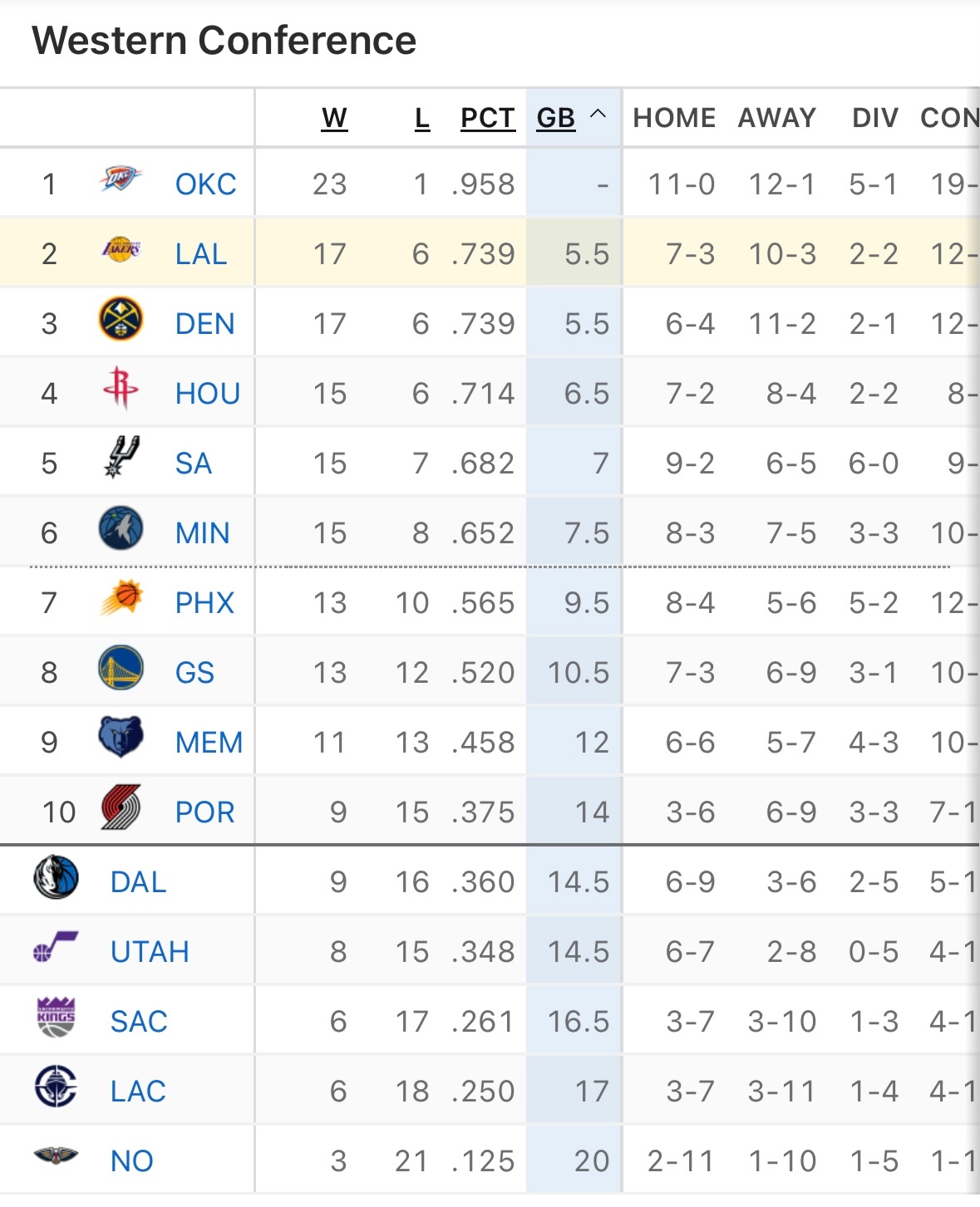 湖人17胜6负排名西部第二,下一场比赛对阵马刺,杯赛一场定胜负,也许能遇到雷霆了