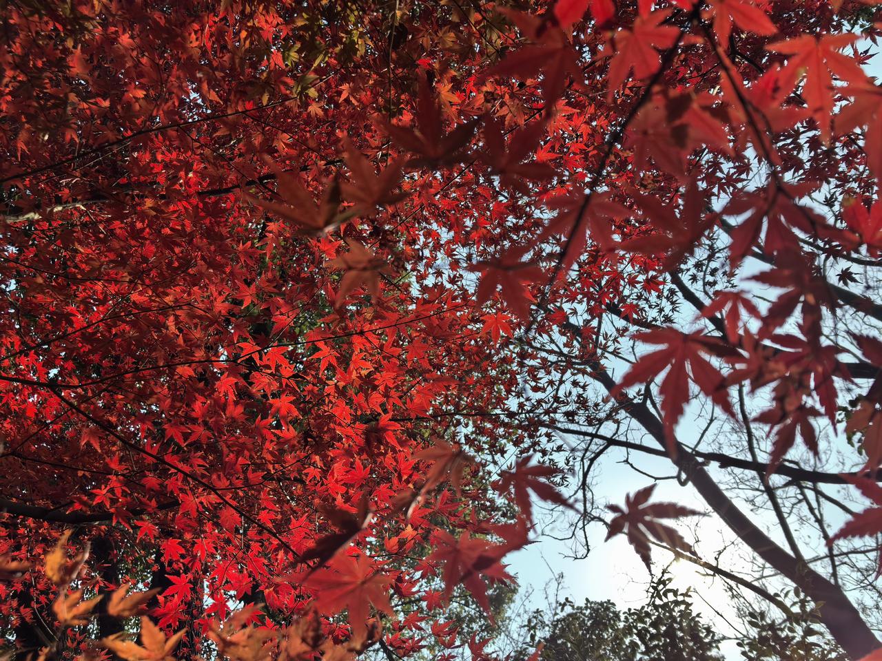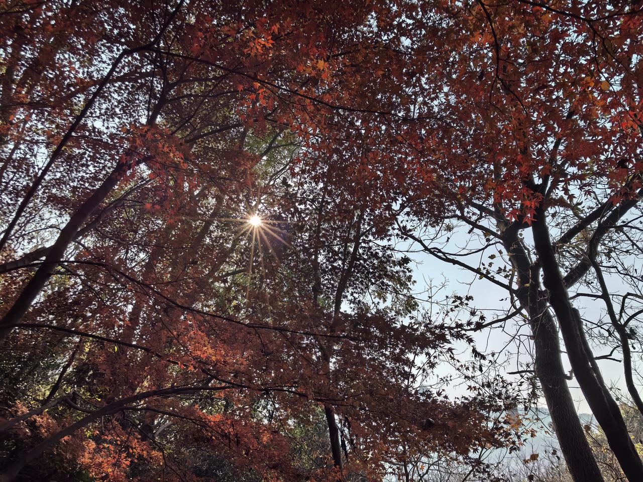 晒图笔记大赛这是小雪时节的湖州,那绚烂的色彩,依然以最耀眼的方式,彰显在每一片叶子中,藏也藏不住。公园,郊野,乡村……从山麓到山顶,色彩由金黄渐变为酡红,层层递进,好似时光的更迭,往更深邃里去。你看,莫干山的红枫已经火红而炽热了;潜山公园的树还混杂着绿色,黄色,红色,还有各种渐变色,宛如一幅色彩饱满的风景画……枫,槭,黄栌,乌桕,它们是秋天独有的温柔,极致的绚烂!