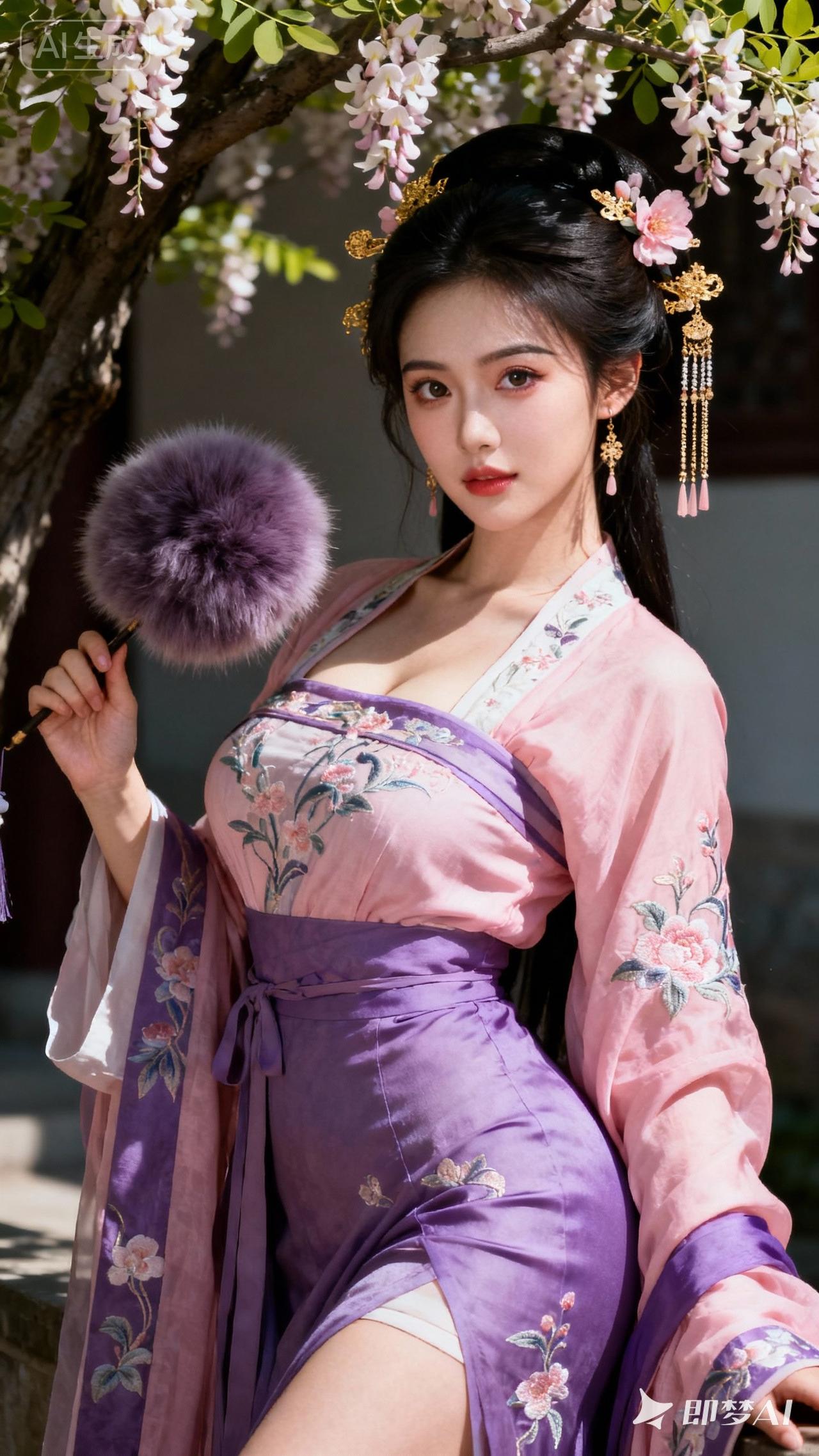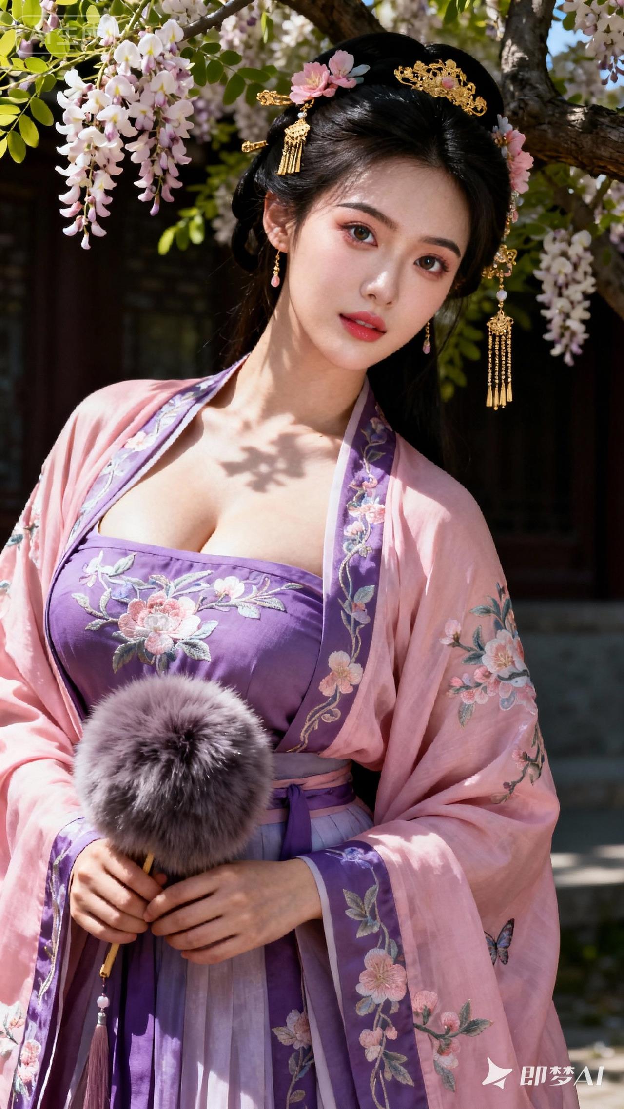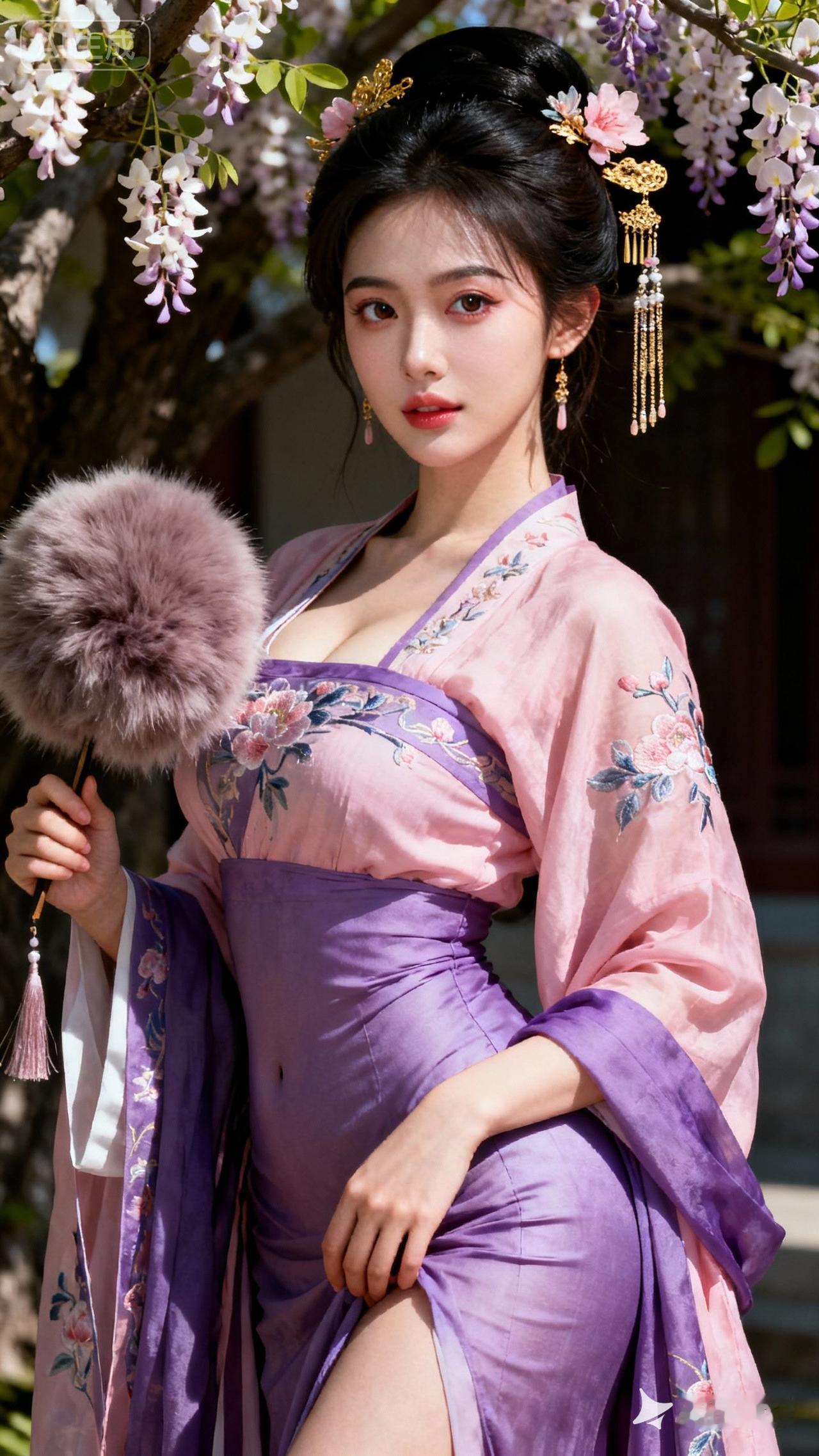 古风少女与花枝招展的春日,粉紫色和服与樱花树相映成趣,美不胜收!🌸💕