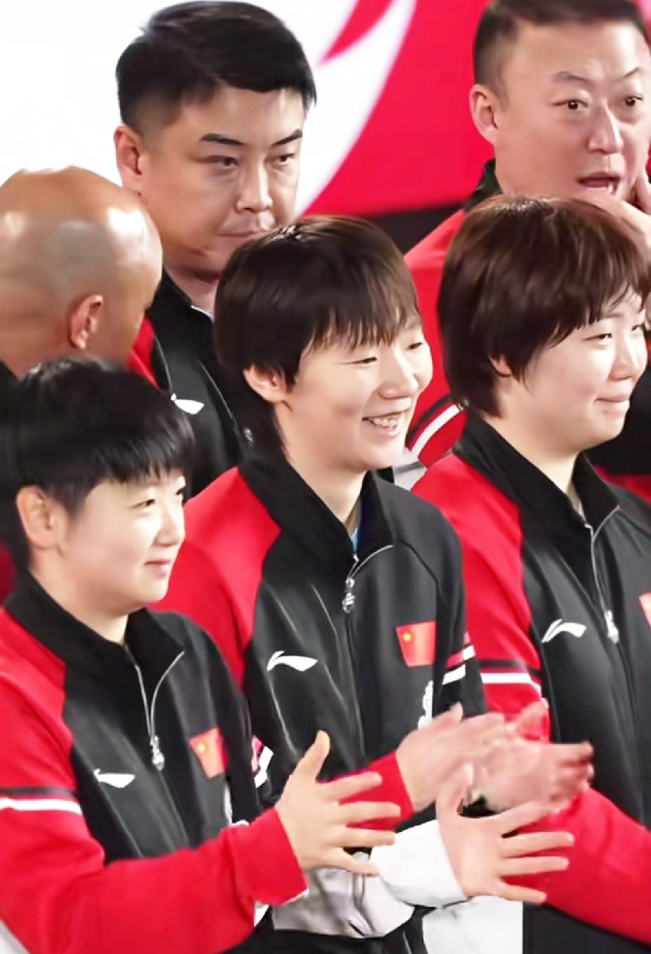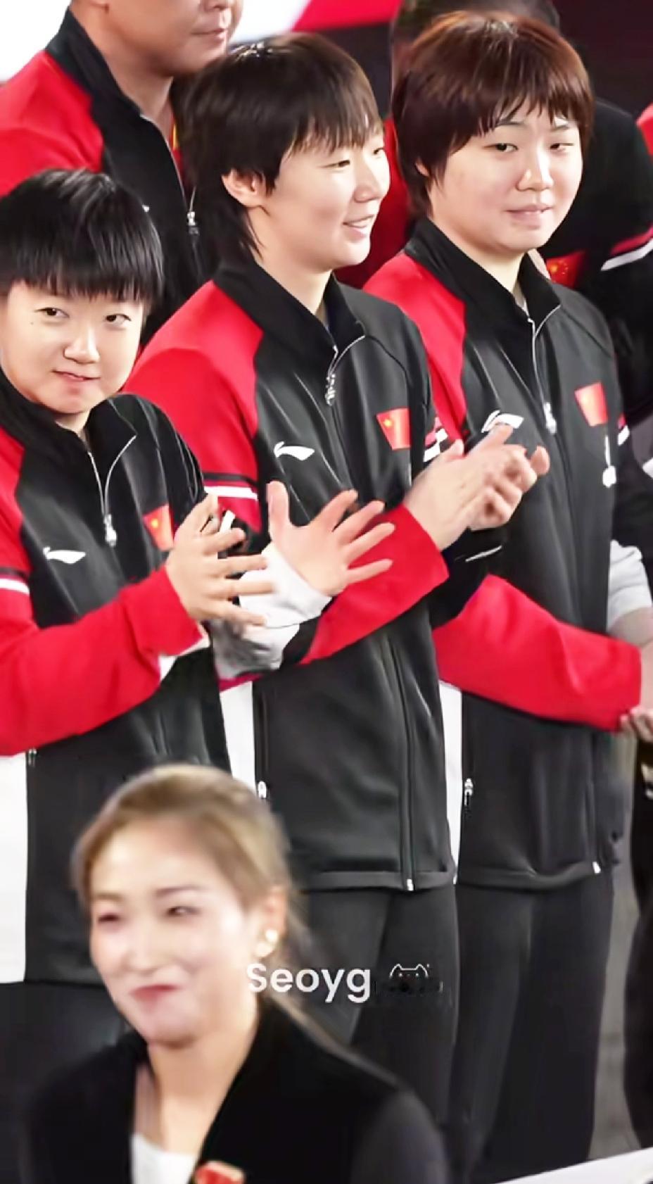 看着这姐三的眼神, 这是视线一路追随, 满眼都是羡慕, 恨不得上去聊几句。 在成都混团颁奖仪式上, 刘诗雯作为颁奖嘉宾现身现场。 这招来国乒队员的围观, 莎莎、鳗鱼、大丫头, 从刘诗雯一上场, 眼神一路追随, 一直到小枣离场。 看来刘诗雯对她们三个影响很大, 她们满眼都是喜欢和羡慕。 看到枣姐作为颁奖嘉宾 妹妹们都非常高兴。 莎莎总是萌萌哒, 张开两只小手使劲鼓掌。 鳗鱼总是认认真真, 笑得嘴巴都没有合拢过。 枣姐离场时特意给她们打招呼 多年以后的莎莎、鳗鱼、大丫头, 也会想枣姐一样优秀。 (图片源自于水印)