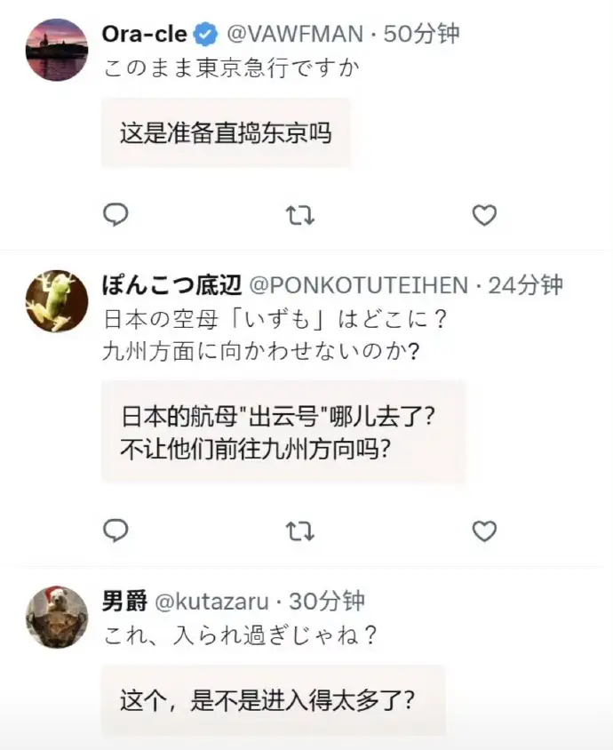 中日动态 辽宁号出宫古海峡后转向东北,直接向日本本岛东南部海域而去。日本人在网上猜测,会不会直捣东京?海自加贺号轻型航母出窝,应该是奔着应对辽宁号编队而出。日本记者找不到中国游客采访 ,要不去采访辽宁号吧,看看中国海军怎么过日本的几个海峡,顺便还可以接受免费X光照射,检查下脑袋里有没有问题!