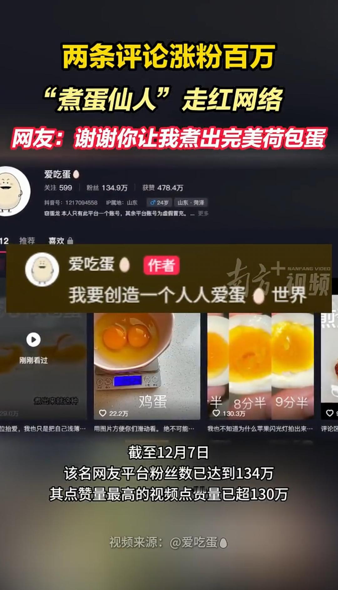 抖音“煮蛋仙人”两条评论涨粉 翻看“爱吃蛋”的主页发现,其此前已发布多条煮蛋视频,展示从半熟到全熟的不同火候效果如“6分半、7分半、8分半、9分半”的蛋黄状态对比。 然而,令人惊讶的并不仅仅是这些看似普通的煮蛋视频,而是“煮蛋仙人”在评论区引发的热潮。短短几天内,他的两条评论竟然带来了数以万计的点赞和回复,粉丝数直线上升。这背后,究竟隐藏着怎样的秘密?为什么一条简单的评论能引爆全民热议,甚至让他成为“网红新宠”? 其实,这不仅仅是一次普通的互动。我们从“煮蛋仙人”的评论中,洞察到一个令人深思的人性真相:那就是对“细节”的追求与“共鸣”的渴望。每一个喜欢煮蛋的普通人,都曾在厨房里反复琢磨火候,追求完美的蛋黄状态。而“煮蛋仙人”用一句“6分半、7分半、8分半、9分半”的精确时间点,精准击中了粉丝们心中的“仪式感”和“成就感”。 更令人动容的是,他的评论不仅仅是炫技,更像是在传递一种生活的态度:细节决定品质,耐心铸就精彩。这种从“平凡”中发掘“非凡”的精神,正是当下社会最需要的正能量。在快节奏的生活中,我们或许都像那只“煮蛋”,追求完美的火候,却忽略了过程中的每一份用心。 这两条评论的火爆,也反映出一个深层次的社会现象:人们渴望被理解、被认同。一个简单的“点赞”或“评论”,就能成为心灵的共鸣点。它告诉我们:在这个信息爆炸、节奏飞快的时代,真正打动人心的,往往是那些细腻、真诚的瞬间。 或许,我们都可以从“煮蛋”这件小事中学到些什么——不必追求一夜成名,但要学会在平凡中发现美好,用心去生活,用心去表达。因为,正是这些细微的“火候”,塑造了我们生活的温度,也让我们在纷繁复杂的世界中,找到那份属于自己的安宁与满足。 所以,下次当你在厨房里煮蛋时,不妨想想“煮蛋仙人”的那份坚持和细腻。也许,这样的用心,正是我们每个人都需要的生活密码。让我们用心去“煮”生活,迎接每一个温暖而精彩的瞬间吧! 煮蛋新方法
