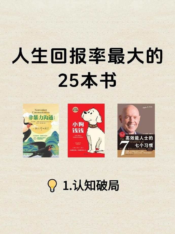 人生回报率最大的25本书,全都给大家带来了,涵盖认知破局、财商逆袭、职场跃迁、心理疗愈以及视野拓展等方面。大家快保存下来,把这些书看完,你会看见一个全新的自己。#寻美三湘##长沙新朋友#